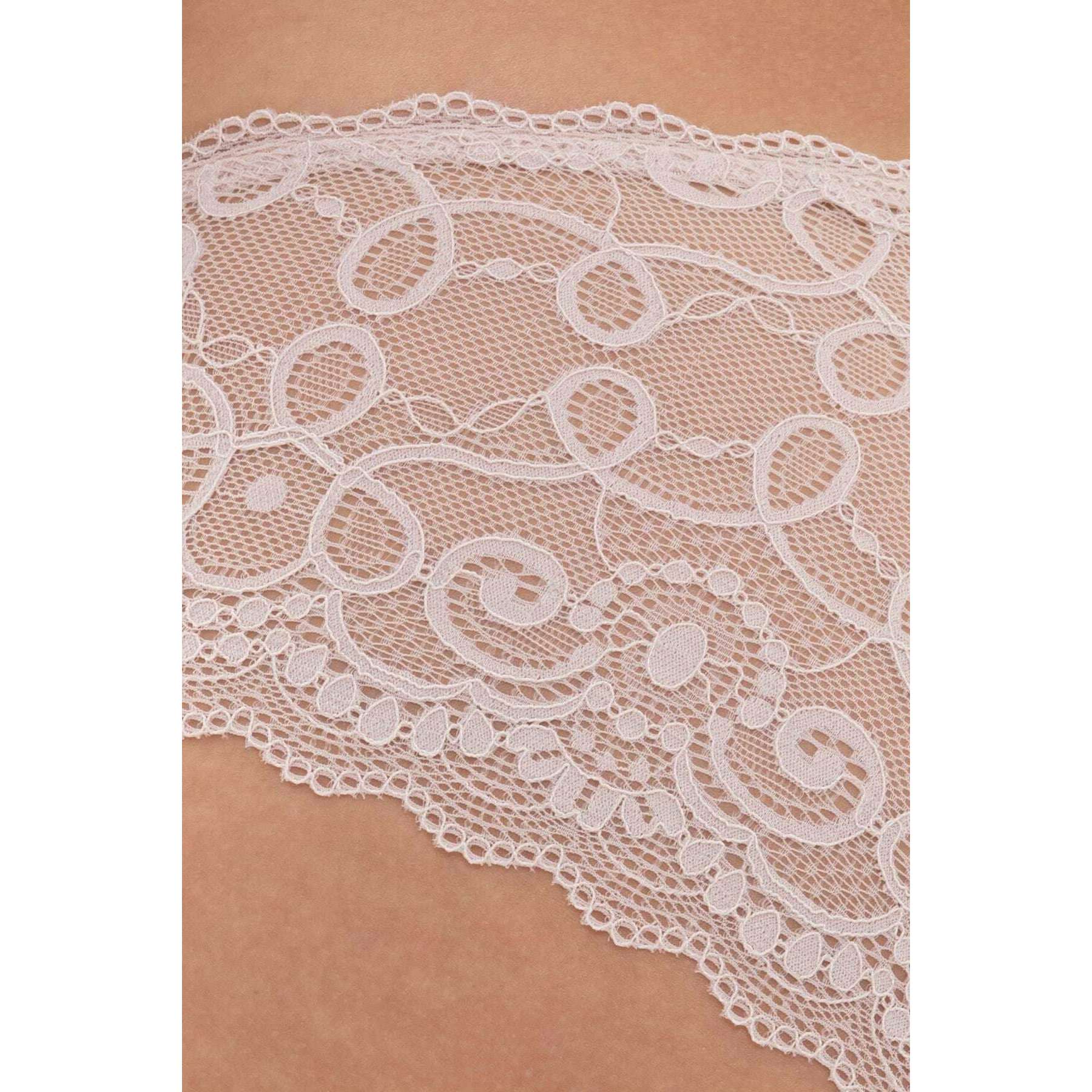 • OEKO-TEX Standard 100, diepe middenhoogte, platte tailleband, kanten achterkant, katoenen inzetstuk op kruisje, decoratieve strik voorkant, grafisch kant