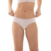 Perfect voor dames is deze Mey bailey beige amoureuze hipsterslip, tevens is hij gemaakt van 87% polyamide en 13% elastaan. Ook het Bailey beige ondergoed is ontworpen in een effen patroon. Het wordt aanbevolen om in de machine te wassen op 30 graden om dit ondergoed in goede staat te houden. Al het ondergoed wordt compleet geleverd met een mey-verpakking. De Mey Amorous Hipster Briefs - Bailey Beige is een musthave als je op zoek bent naar een basic met een prachtige touch voor een vrouwelijke feel. Dit paar heeft een diepe middelhoge taille, een katoenen inzetstuk op het inzetstuk, naadloze pijpen en een platte tailleband die allemaal bijdragen aan optimaal comfort voor dagelijks gebruik. De kanten achterkant geeft een elegante, sexy flair.