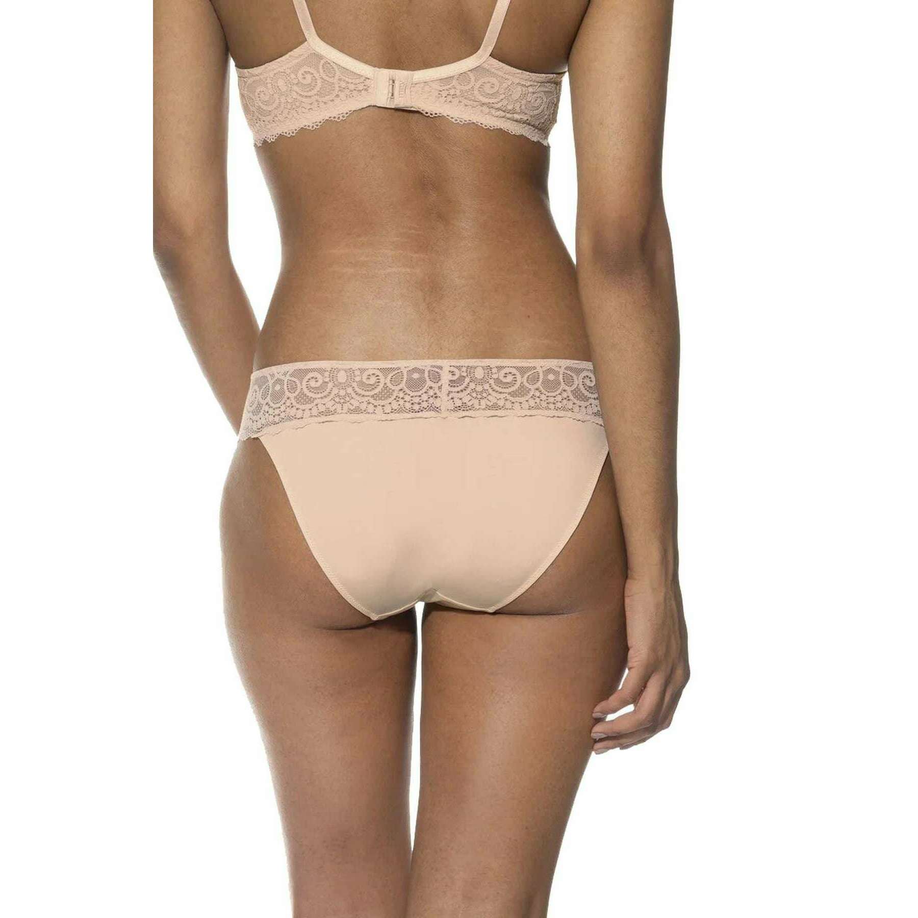 • Diepe mid -opkomst, platte tailleband voor comfort, katoenen inzetstuk op kuste, kanten details