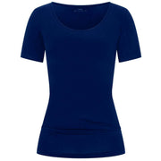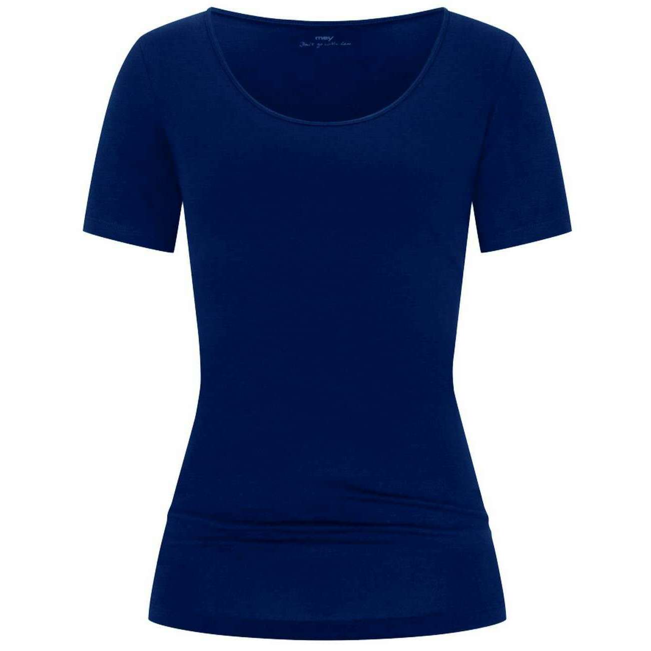 Deze damestop van puur katoen met halve mouwen is gemaakt van 94% katoen en 6% elastaan, uitgevoerd in een blauwe kleur en is van het merk Mey. Ook het nachtblauwe t-shirt is ontworpen in een effen patroon. Het wordt aanbevolen om in de machine te wassen op 60 graden om dit t-shirt in goede staat te houden. Alle t-shirts worden compleet geleverd met een mey-verpakking. De Mey Cotton Pure top met halve mouwen - Night Blue heeft een halve mouwlengte, een klassieke ronde halslijn en een strak, sportief-elegant design. Met een ongelooflijke pasvorm en ademende, huidvriendelijke stof biedt het de hele dag comfort en een natuurlijk aangenaam gevoel tegen de huid, een perfecte dagelijkse must-have.