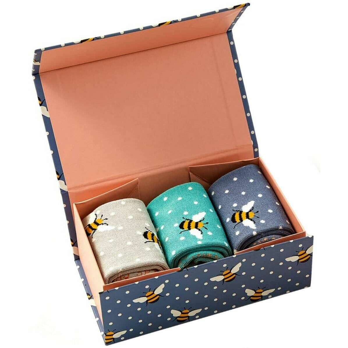 Miss Sparrow London 3-pack Bumble Bee sokkendoos - groen/blauw/grijs