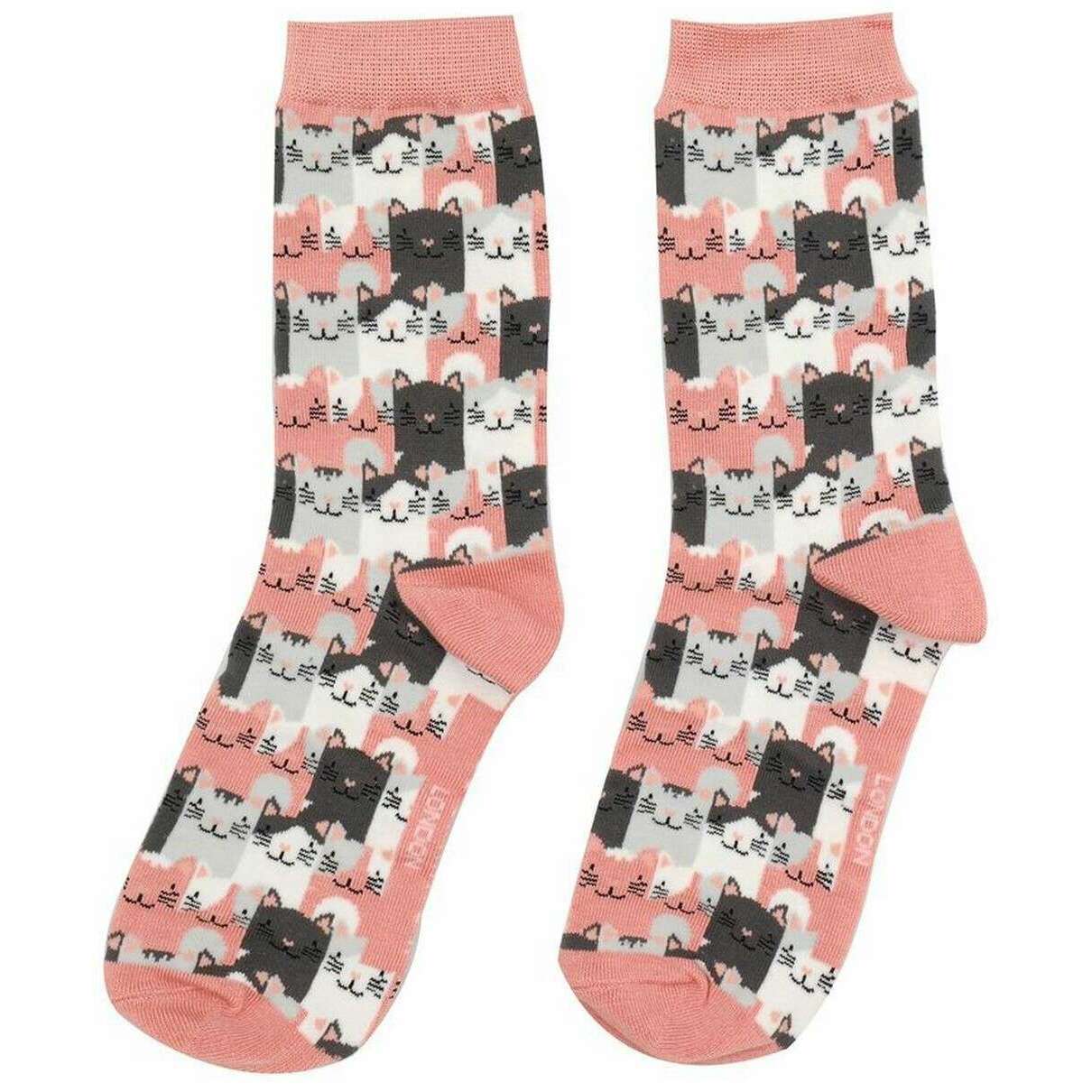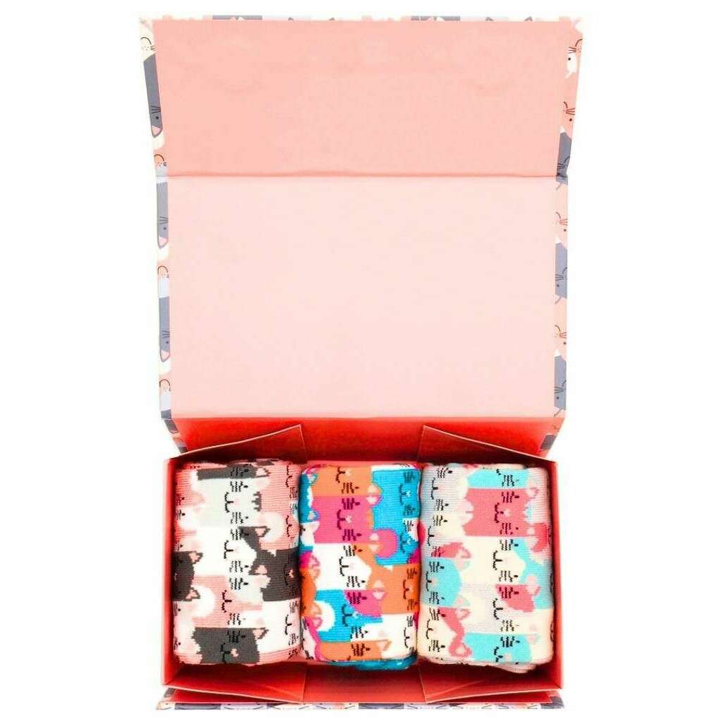 Miss Sparrow London 3 Pack Happy Cats Sokkendoos - Roze/Blauw