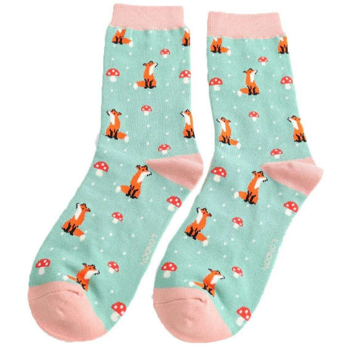 Miss Sparrow London Fox en Toadstool bamboe sokken - groen