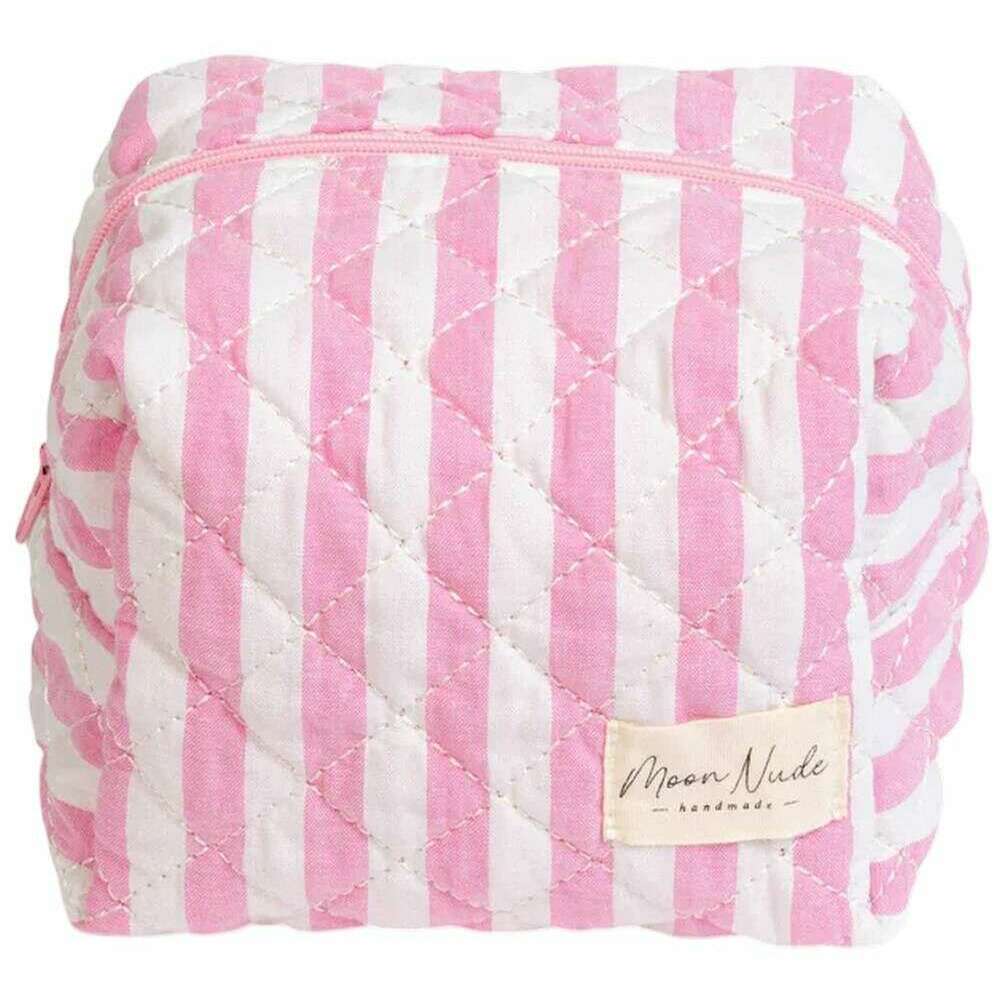 Dit barbie mini make-uptasje voor dames is van het merk Moon Nude in een roze kleur en is gemaakt van 100% katoen. De afmetingen zijn 13 cm (hoogte) x 15 cm (breedte) x 11 cm (diepte). Het wordt aanbevolen om met de hand te wassen in koud water met een mild wasmiddel, of binnenstebuiten machinaal te wassen op een delicate cyclus. om deze tas in goede staat te houden. Alle tassen worden compleet geleverd met een maannaaktverpakking. De Moon Nude Barbie Mini Makeup Bag - Roze/Wit is een absolute noodzaak voor je kamer of dagelijkse tas. Deze make-uptas houdt gegarandeerd al je meest gebruikte producten bij elkaar en veilig, terwijl hij ook stijlvol en chic is met zijn handgemaakte gewatteerde ontwerp.
