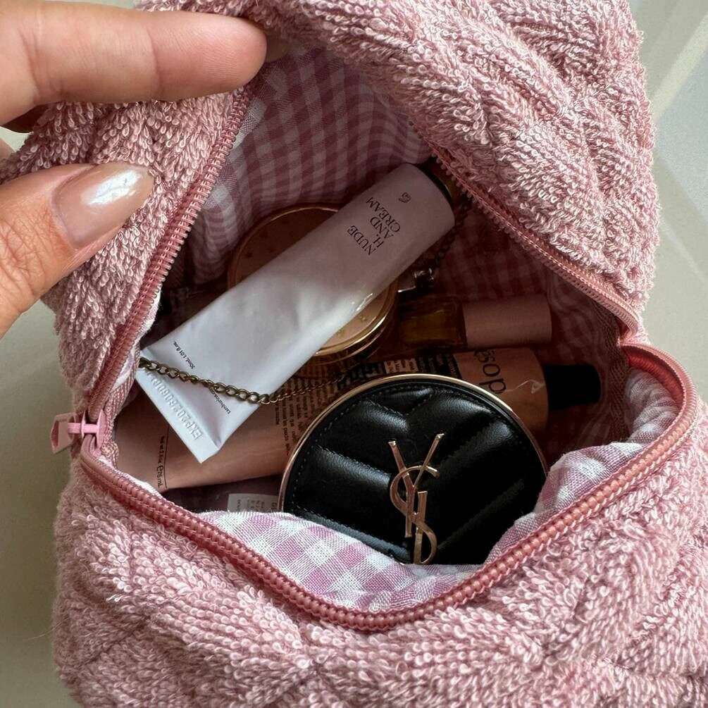 Ontwerper Moon Nude heeft deze damestas van 100% katoen in roze/witte tinten uitgebracht. De afmetingen zijn 13 cm (hoogte) x 15 cm (breedte) x 11 cm (diepte). Het wordt aanbevolen om met de hand te wassen in koud water met een mild wasmiddel, of binnenstebuiten machinaal te wassen op een delicate cyclus. om deze tas in goede staat te houden. Alle tassen worden compleet geleverd met een maannaaktverpakking. De Moon Nude Blush Mini Makeup Bag - Roze/wit is een absolute noodzaak voor je kamer of dagelijkse tas. Deze make-uptas houdt gegarandeerd al je meest gebruikte producten bij elkaar en veilig, terwijl hij ook stijlvol en chic is met zijn handgemaakte gewatteerde ontwerp.