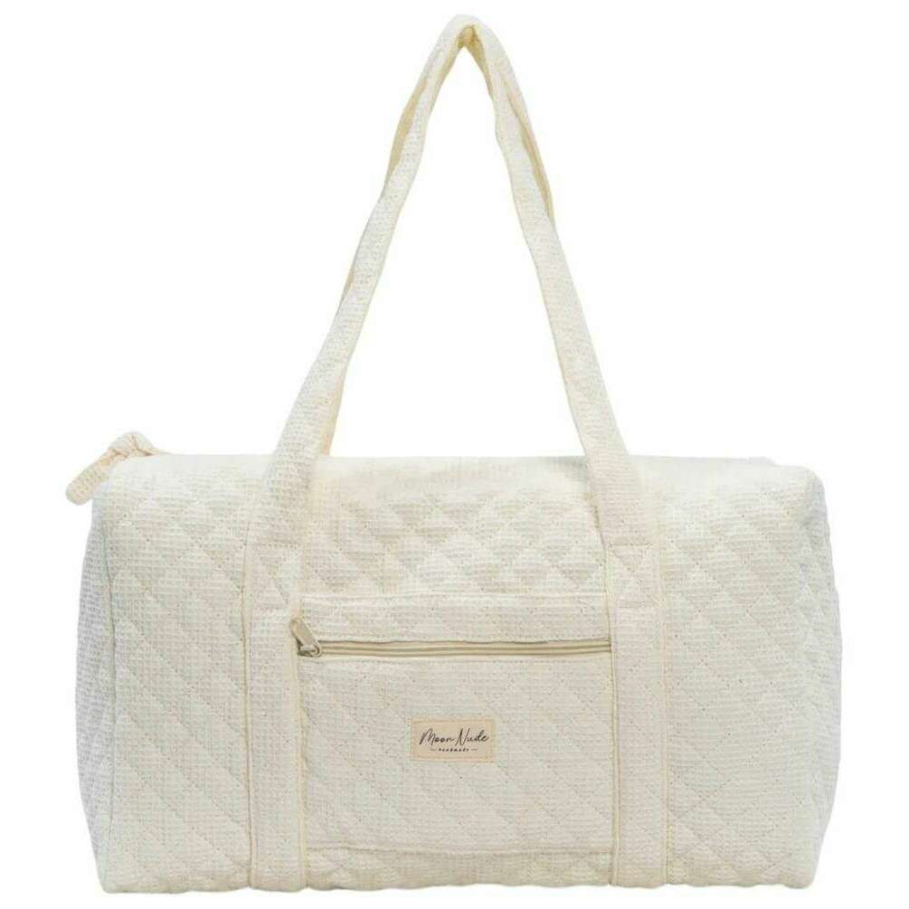 Deze crèmekleurige grote plunjezak voor dames, aangeboden door het merk Moon Nude, is gemaakt van 100% katoen. De afmetingen zijn 30 cm (hoogte) x 50 cm (breedte) x 28 cm (diepte). Het wordt aanbevolen om met de hand te wassen in koud water met een mild wasmiddel, of binnenstebuiten machinaal te wassen op een delicate cyclus. om deze tas in goede staat te houden. Alle tassen worden compleet geleverd met een maannaaktverpakking. De Moon Nude Large Duffel Bag - Cream heeft een prachtig handgemaakt gewatteerd ontwerp. Deze tas heeft een buitenvak met ritssluiting, een ruim interieur en twee grote handvatten, perfect voor een weekendje weg of het meenemen van veel spullen.