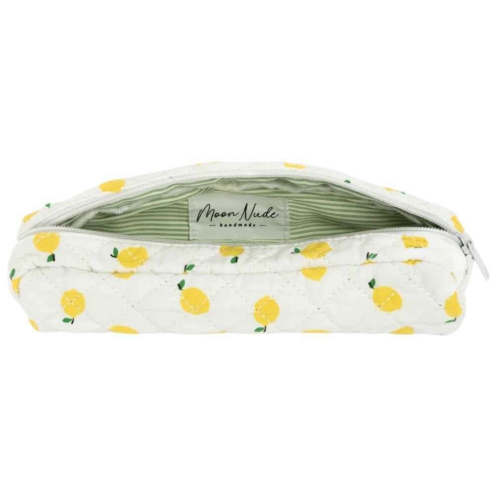 Dit dames limonade etui van het merk Moon Nude is gemaakt van 100% katoen en is uitgevoerd in het wit. De afmetingen zijn 7 cm (hoogte) x 24 cm (breedte) x 6 cm (diepte). Het wordt aanbevolen om met de hand te wassen in koud water met een mild wasmiddel, of binnenstebuiten machinaal te wassen op een delicate cyclus. om deze etui in goede staat te houden. Alle etuis worden compleet geleverd met een maannaaktverpakking. De Moon Nude Lemonade Etui - Wit/Geel is een absolute noodzaak voor werk of school. Met deze etui bewaar je gegarandeerd al je schrijfwaren op één plek, terwijl hij ook stijlvol en chic is met zijn handgemaakte gewatteerde ontwerp.