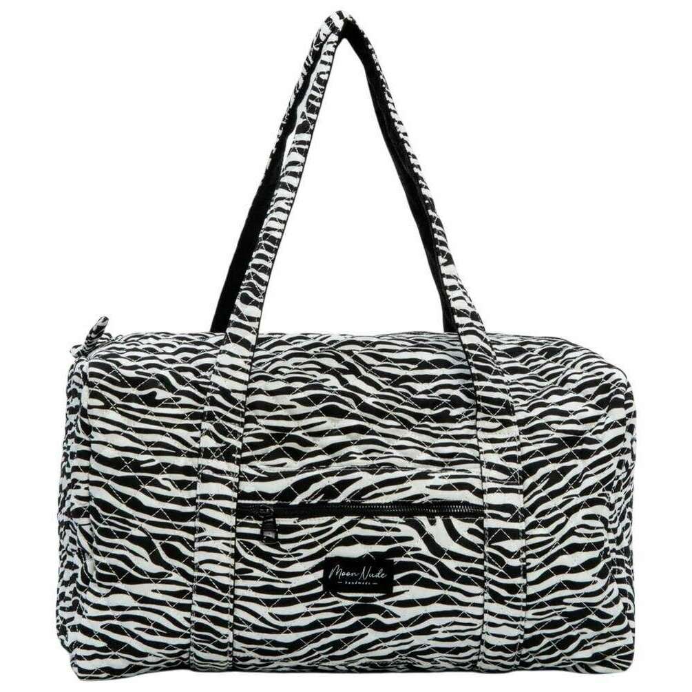 Ontwerper Moon Nude heeft deze damestas van 100% katoen in wit/zwarte tinten uitgebracht. De afmetingen zijn 30 cm (hoogte) x 50 cm (breedte) x 28 cm (diepte). Het wordt aanbevolen om met de hand te wassen in koud water met een mild wasmiddel, of binnenstebuiten machinaal te wassen op een delicate cyclus. om deze tas in goede staat te houden. Alle tassen worden compleet geleverd met een maannaaktverpakking. De Moon Nude Noir Large Duffel Bag - Wit/Zwart heeft een prachtig handgemaakt gewatteerd ontwerp. Deze tas heeft een buitenvak met ritssluiting, een ruim interieur en twee grote handvatten, perfect voor een weekendje weg of het meenemen van veel spullen.