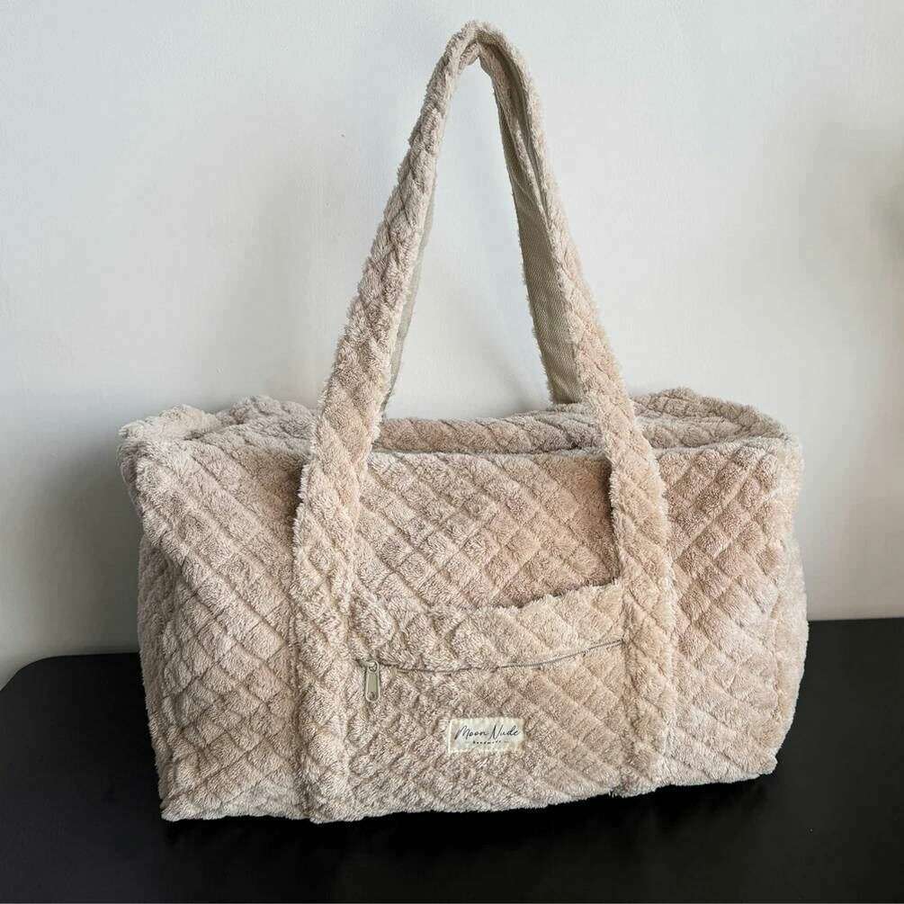 Deze teddy grote plunjezak voor dames is gemaakt van 100% katoen, uitgevoerd in een beige kleur en is van het merk Moon Nude. De afmetingen zijn 30 cm (hoogte) x 50 cm (breedte) x 28 cm (diepte). Het wordt aanbevolen om met de hand te wassen in koud water met een mild wasmiddel, of binnenstebuiten machinaal te wassen op een delicate cyclus. om deze tas in goede staat te houden. Alle tassen worden compleet geleverd met een maannaaktverpakking. De Moon Nude Teddy Large Duffel Bag - Beige heeft een prachtig handgemaakt gewatteerd ontwerp. Deze tas heeft een buitenvak met ritssluiting, een ruim interieur en twee grote handvatten, perfect voor een weekendje weg of het meenemen van veel spullen.