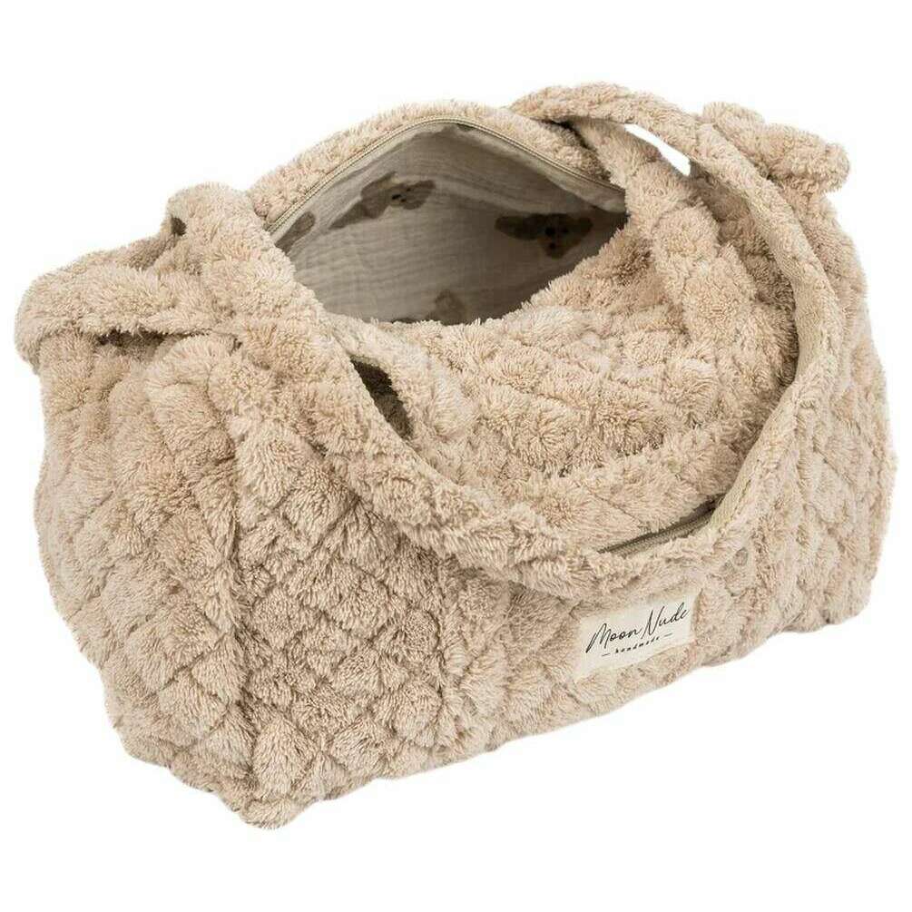 Perfect voor dames is deze Moon Nude beige teddy mini plunjezak, hij is tevens gemaakt van 100% katoen. De afmetingen zijn 18 cm (hoogte) x 31 cm (breedte) x 18 cm (diepte). Het wordt aanbevolen om met de hand te wassen in koud water met een mild wasmiddel, of binnenstebuiten machinaal te wassen op een delicate cyclus. om deze tas in goede staat te houden. Alle tassen worden compleet geleverd met een maannaaktverpakking. De Moon Nude Teddy Mini Duffel Bag - Beige heeft een prachtig handgemaakt gewatteerd ontwerp. Deze tas heeft een buitenvak met ritssluiting, een ruim interieur en twee grote handvatten, perfect voor een casual uitgaanstas of als cadeau.