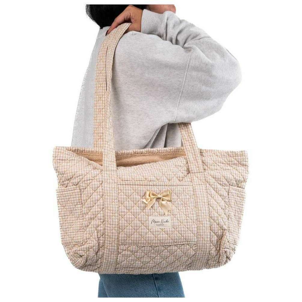 Deze mooie damestas van Moon Nude wordt geleverd in een crème/beige kleur en is vervaardigd van 100% katoen. De afmetingen zijn 30 cm (hoogte) x 42 cm (breedte) x 12 cm (diepte). Het wordt aanbevolen om met de hand te wassen in koud water met een mild wasmiddel, of binnenstebuiten machinaal te wassen op een delicate cyclus. om deze tas in goede staat te houden. Alle tassen worden compleet geleverd met een maannaaktverpakking. De Moon Nude Tote Bag - Crème/Beige heeft een prachtig handgemaakt gewatteerd ontwerp. Perfect voor onderweg, of het nu voor op reis is of voor dagelijks gebruik. Deze draagtas heeft een ritssluiting voor de veiligheid, lange schouderbanden voor comfort en een ruim interieur voor al je spullen.