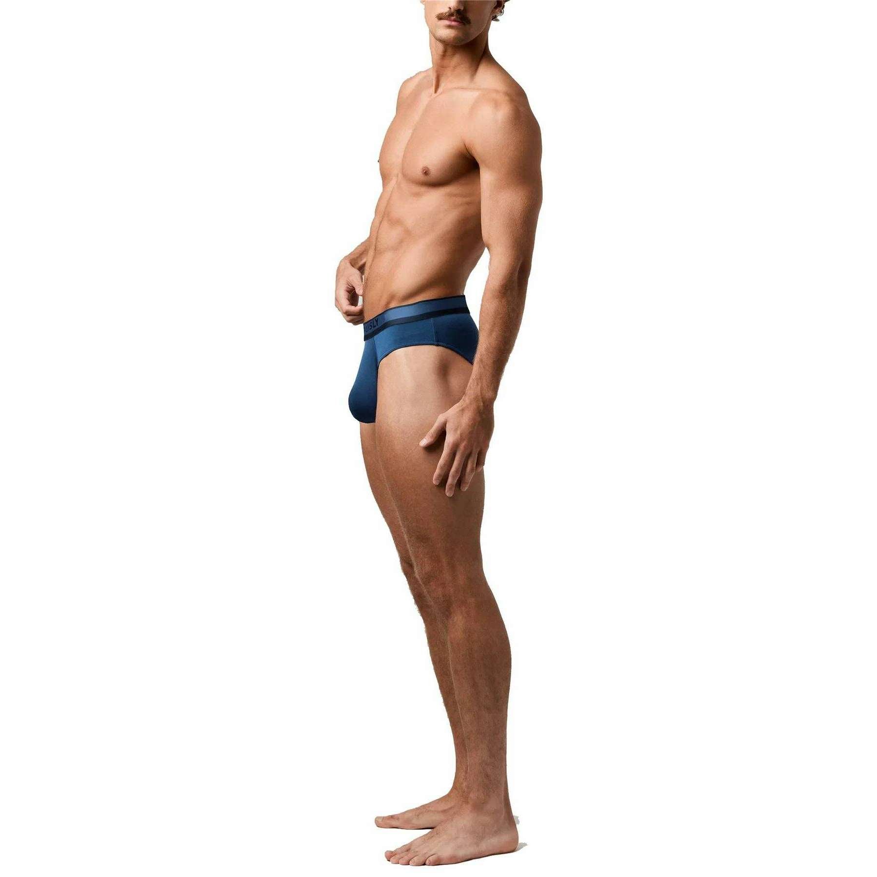 Perfect voor heren is deze uiteraard titan blauwe primeman slip, tevens is hij gemaakt van 90% micro modal en 10% lycra. Ook het titanblauwe ondergoed is ontworpen in een effen patroon. Het wordt aanbevolen om op 30 graden of minder te wassen en op een lage temperatuur in de droger te drogen om dit ondergoed in goede staat te houden. Al het ondergoed wordt compleet geleverd met uiteraard een verpakking. De Uiteraard PrimeMan Slip - Titan Blue biedt een natuurlijke positionering zodat u de meest comfortabele pasvorm kunt ervaren dankzij de anatomische buideltechnologie. De tailleband is glad en zijdeachtig en rekbaar om optimale flexibiliteit tijdens het dragen te garanderen. Deze slip is perfect voor de actieve gentleman, omdat hij is ontworpen om te werken met de natuurlijke beweging van je lichaam. Dit is ideaal voor mannen met grotere dijen vanwege de grotere beenopeningen en een dieper zitvlak. Het materiaal is milieuvriendelijk, antibacterieel, schimmelwerend en hypoallergeen, zodat u zich de hele dag comfortabel voelt.