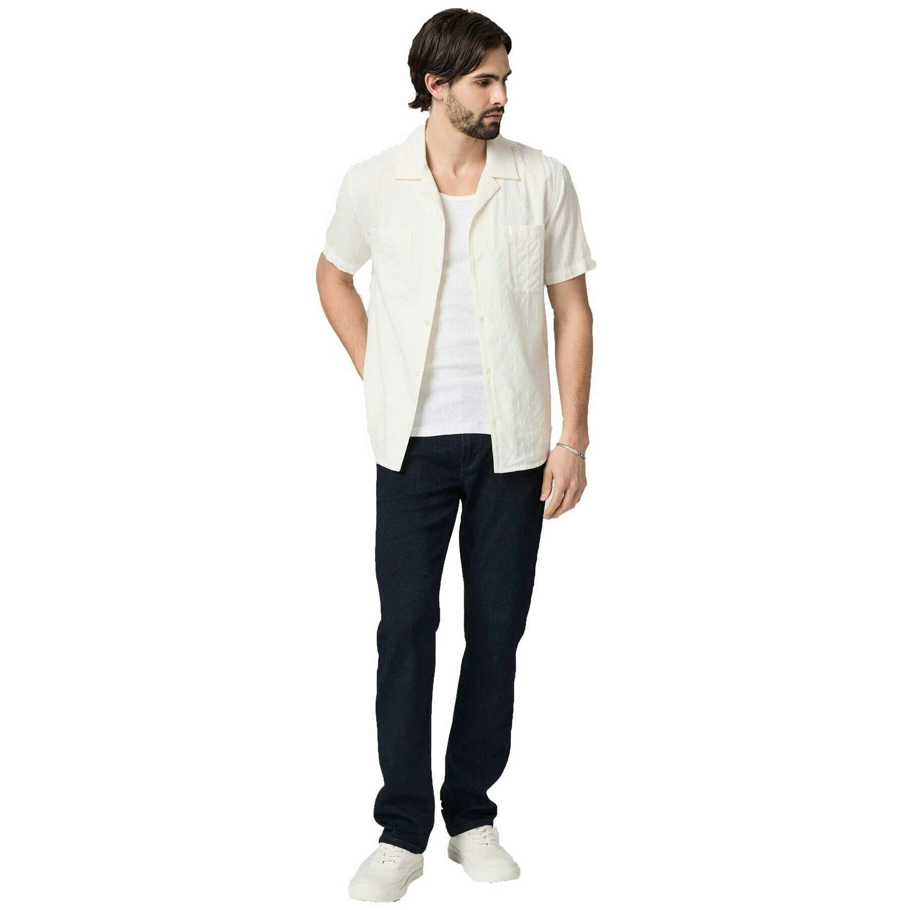 • 10 1/4" opkomst, 33 1/2" binnenbeenlengte, 15" beenopening, hoge stretch, Transcend denim, rechte pasvorm, licht gemak bij de heup