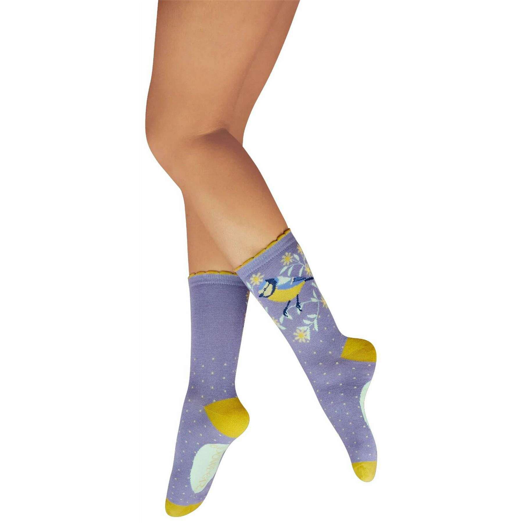 Powder Blooming Blue Tit Enkelsokken - Paars/Geel/Wit