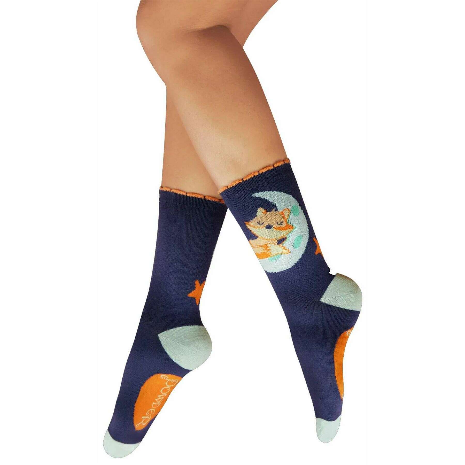 Powder Dreaming Fox Enkelsokken - Marine/Lichtblauw/Oranje