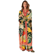 Poeder exotische bladeren kimono-jurk - groen/beige/geel