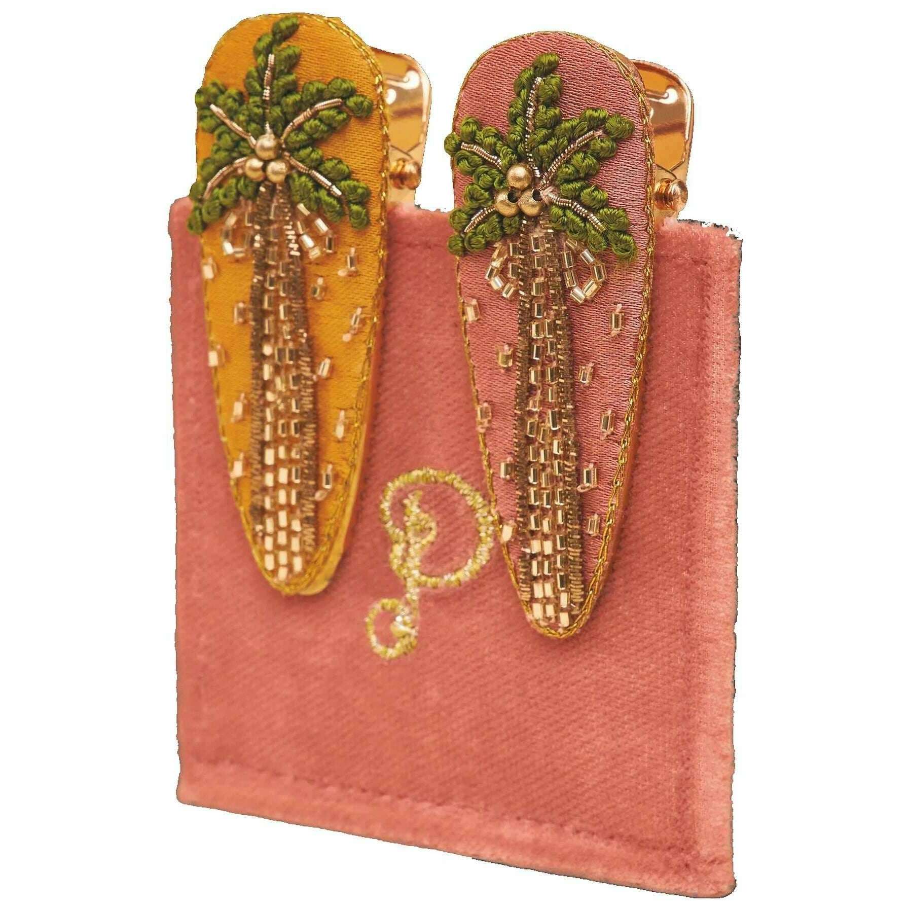 Poederpalmbomen haarclips - roze/groen/oranje