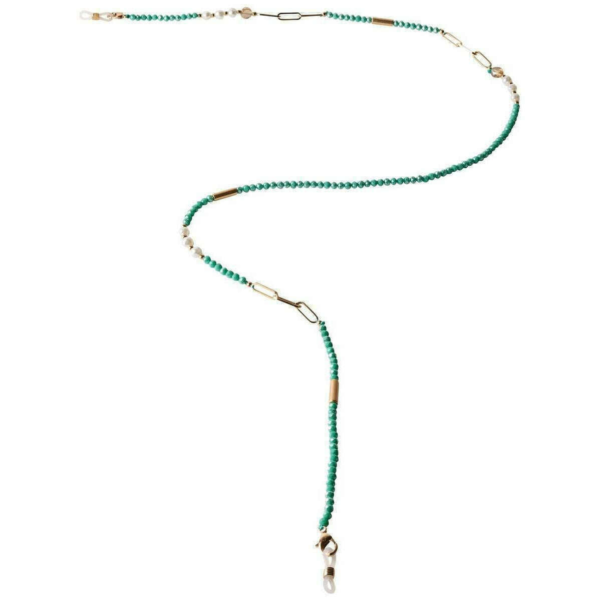 Poeder parel kralen zonnebrillen ketting - turquoise/goud