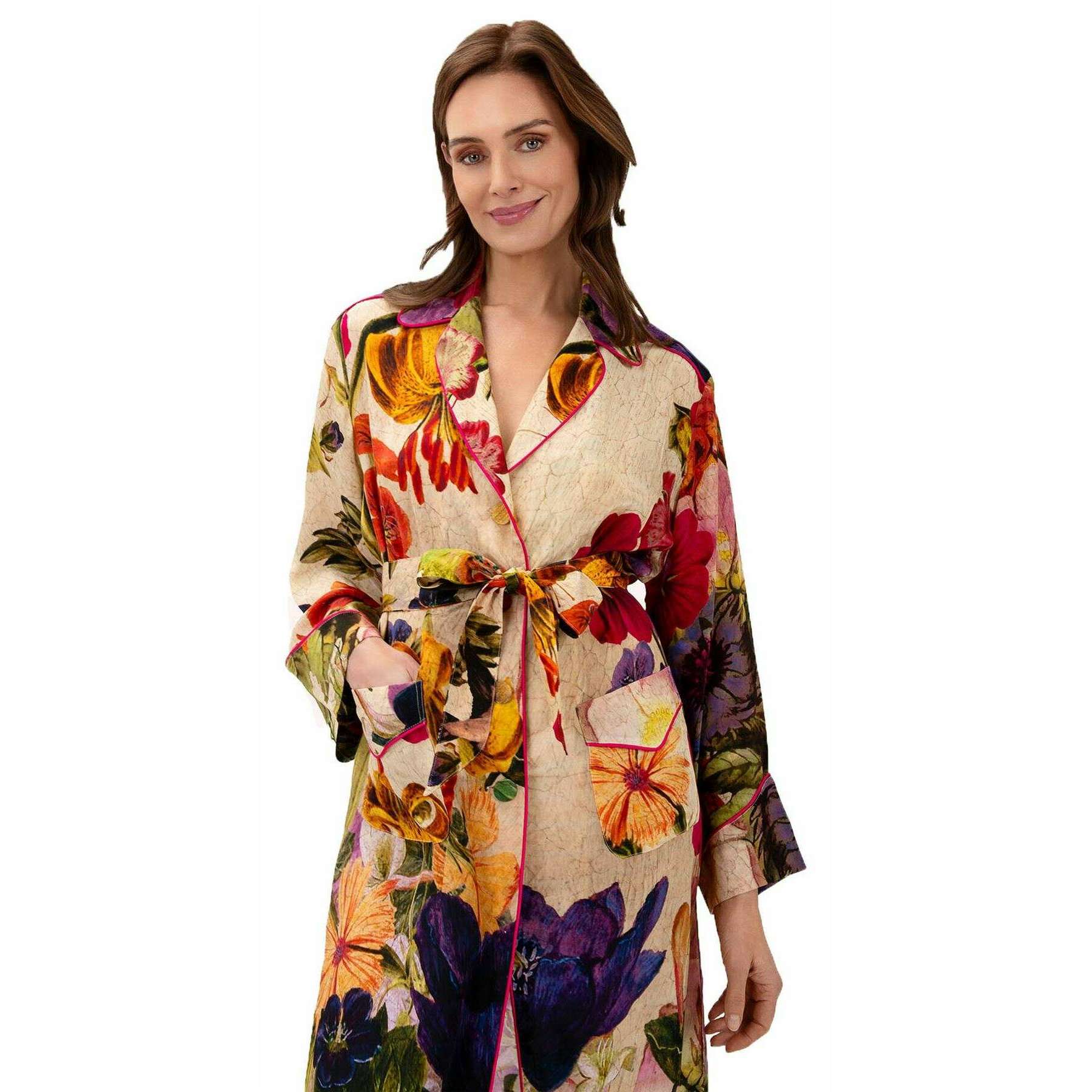Deze goed gemaakte posy lux satijnen damesjurk van Powder wordt geleverd in een crèmekleur en is vervaardigd uit 100% modal. Ook de crèmekleurige kamerjas is ontworpen in een bloemmotief. Alle kamerjassen worden compleet geleverd met poedertags. De Powder Posy Lux Satijnen Jurk - Crème heeft een prachtige snit en een voortreffelijke glansafwerking, waardoor het de ideale kamerjas is voor de collectie van elke vrouw. Dankzij de bedekte knopen en een strikceintuur in de taille kun je hem dragen op een manier die bij jouw stijl past. De moeiteloos luxe textuur en prachtige oversized bloemen zorgen er samen voor dat deze jurk een echt stijlvol exemplaar is.
