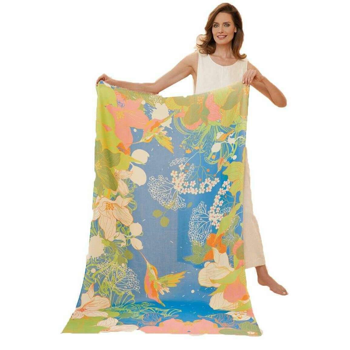 Poeder bedrukte kolibrie sjaal - denimblauw