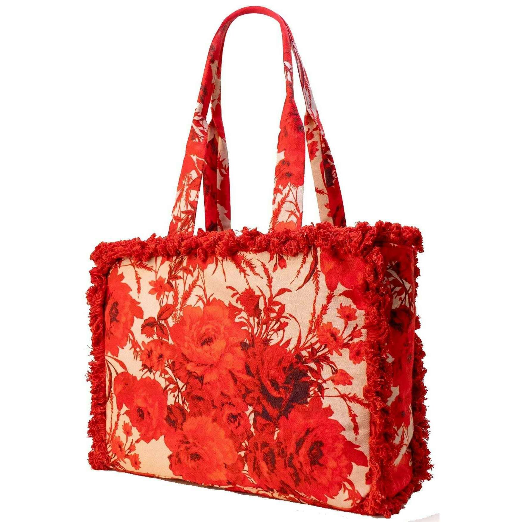 Powder Rouge Blooms Fringe Box Tote - Rood/Beige