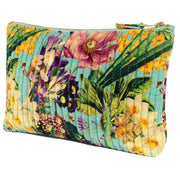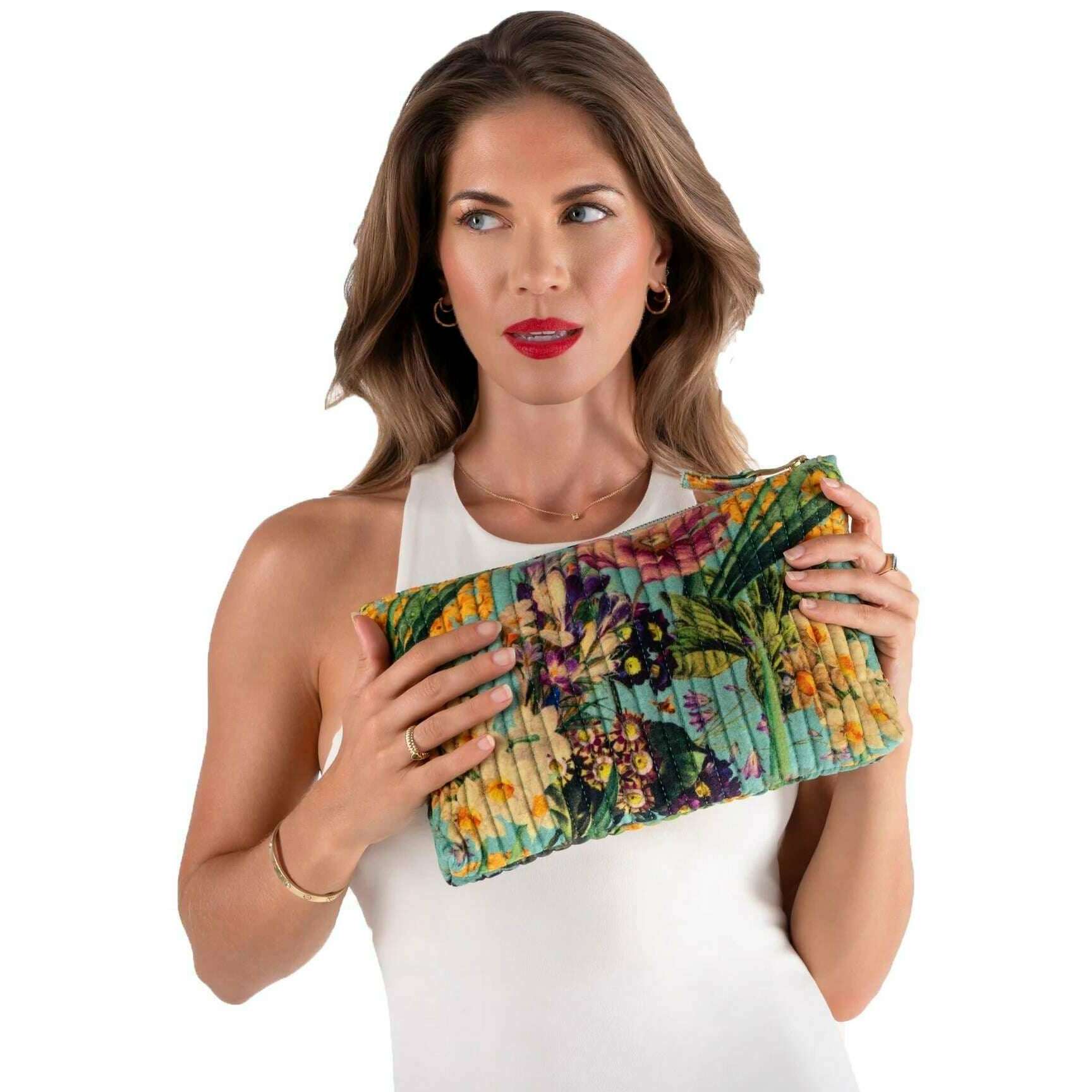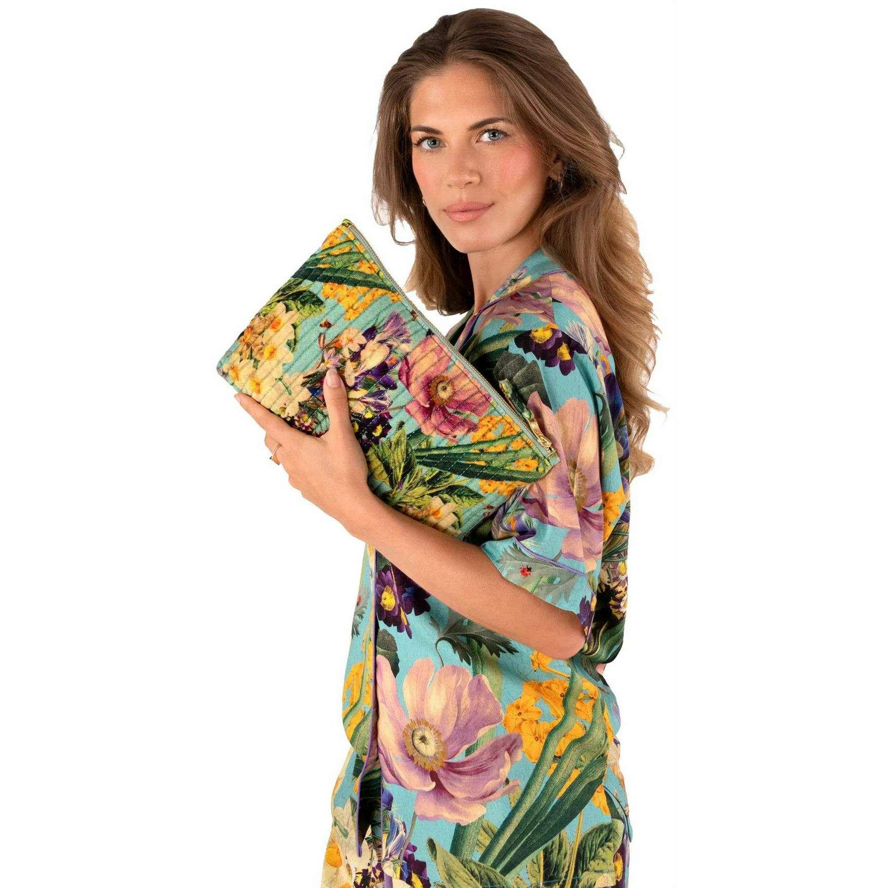 Powder Spring Flora gewatteerd fluwelen etui met ritssluiting - blauw/beige/groen