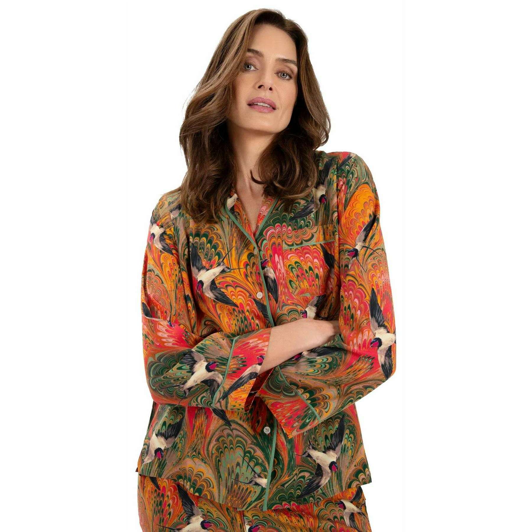 Designer Powder heeft u deze 100% viscose -pyjama's van deze dames gebracht met oranje tonen. Ook zijn de oranje pyjama's ontworpen in een uniek patroon, het wordt aanbevolen om machine te wassen op 30 graden om deze pyjama's in goede staat te houden. Alle pyjama's worden compleet geleverd met poedertags. De poeder Supersoft Marbled Swallows Pyjama's - Oranje hebben een combinatie van twee prints met zwaluwen verspreid voor een psychedelisch ontwerp dat levendig en leuk is, perfect voor gezellige avonden. Deze opvallende PJ's met een lange broek en een top met lange mouwen creëren een gewaagde vrouwelijke look waar je zeker van zult houden en altijd wil dragen.