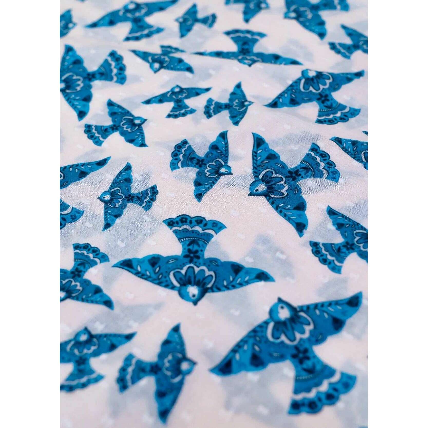 Poeder aquarel vogels Infinity sjaal - blauw/beige
