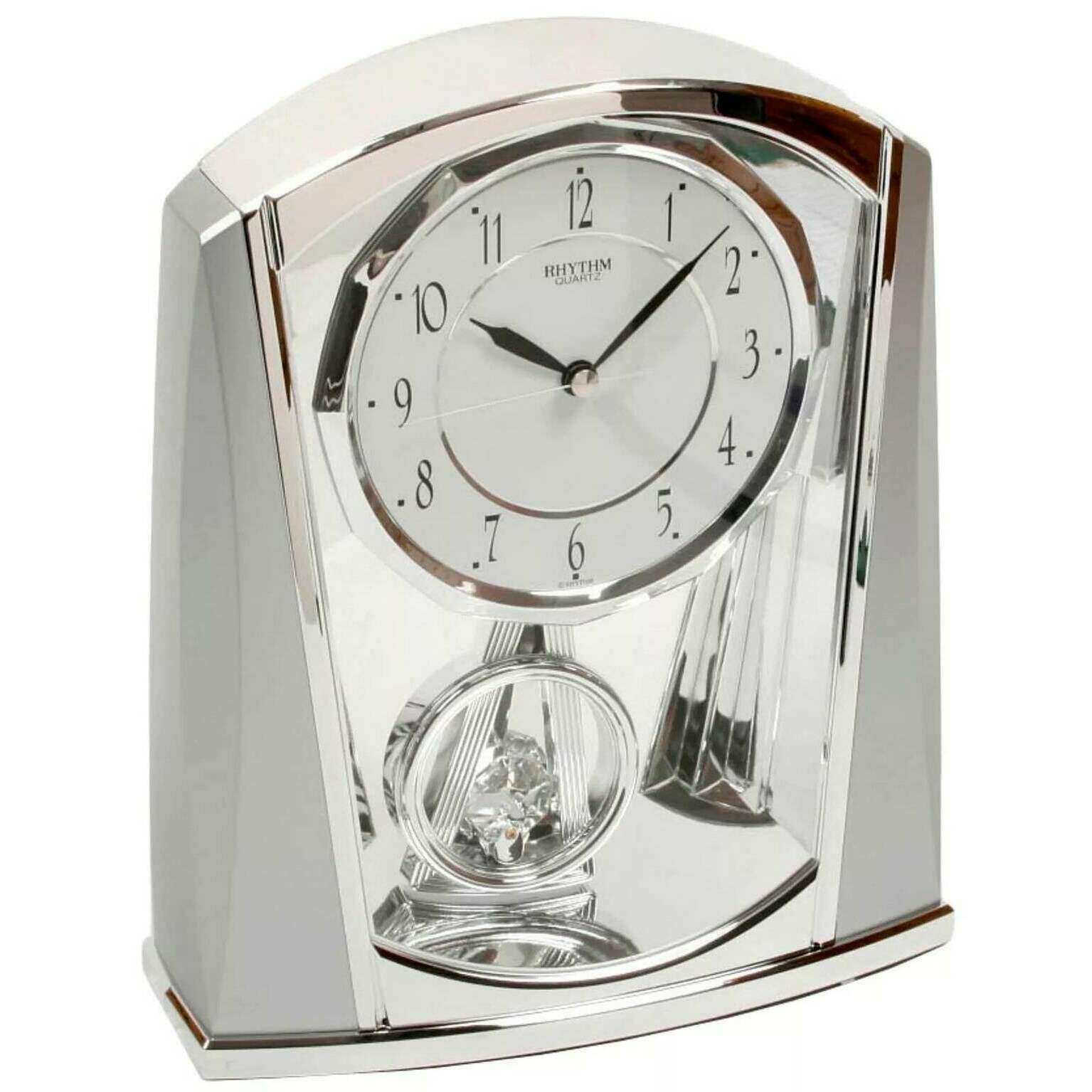 Deze unisex pendule met pendule en pendule van het merk Rhythm is gemaakt van metaal en is uitgevoerd in zilver. De afmetingen zijn 21,3 cm (hoogte) x 7,5 cm (breedte) x 17,7 cm (diepte). Alle klokken worden compleet geleverd met een ritmebox. De Rhythm Wedge Sides Pendulum Cont Mantel Clock - Chroom is een must-have als u uw woonkamer wilt inrichten met luxe en een huiselijke sfeer. Deze klok is voorzien van een stille, comfortabele schommelslinger die zorgt voor een rustige omgeving en optimale ontspanning. Dit eenvoudige maar uiterst gedetailleerde ontwerp zal nog vele jaren favoriet zijn dankzij de toegevoegde sierlijke look en het metallic effect.