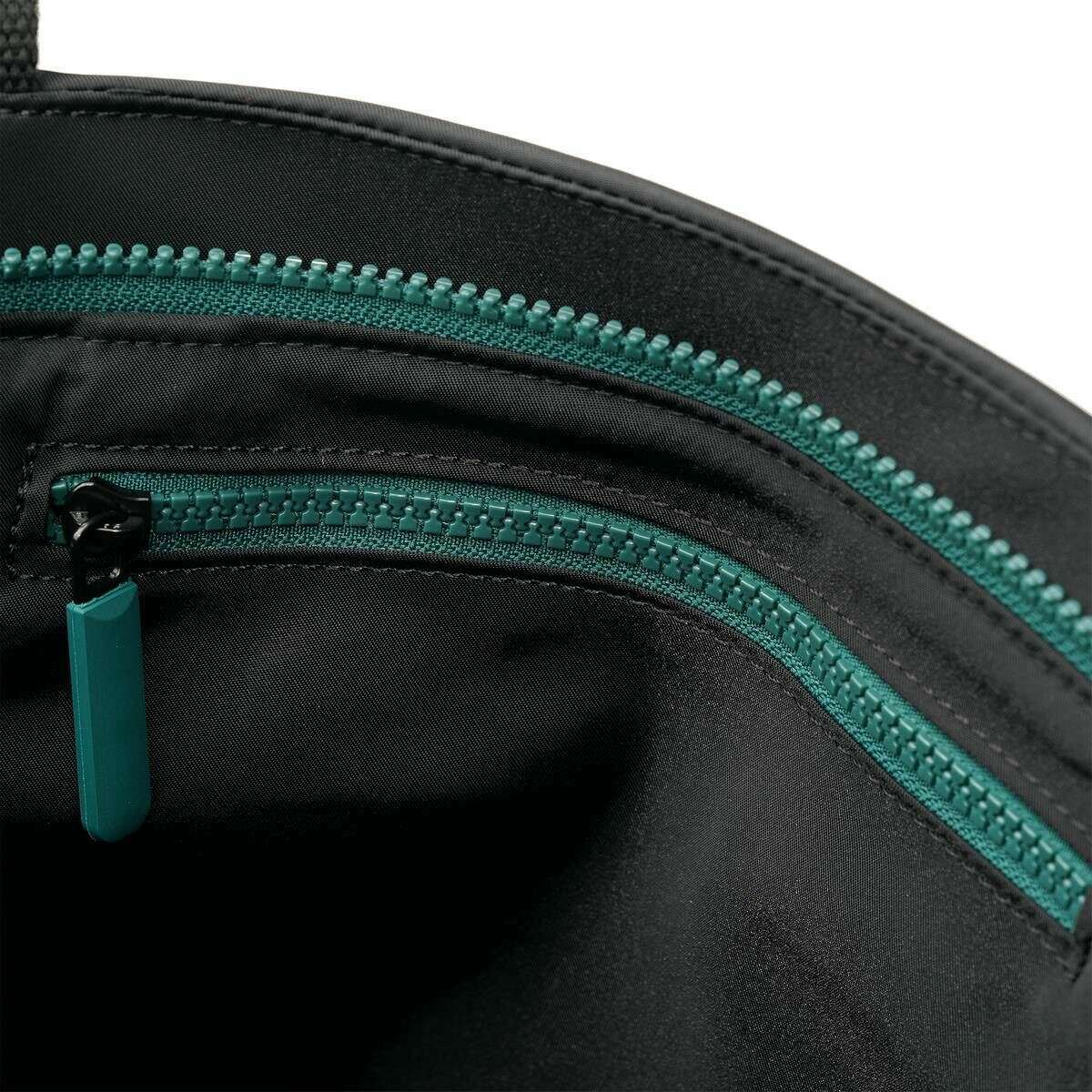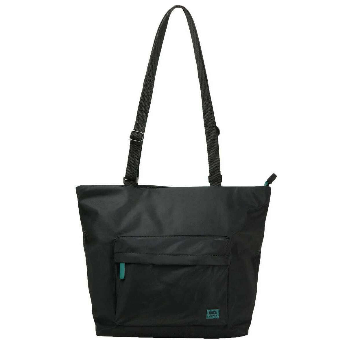 Roka trafalgar b alle zwarte gerecyclede nylon draagtas - zwart/groenblauw