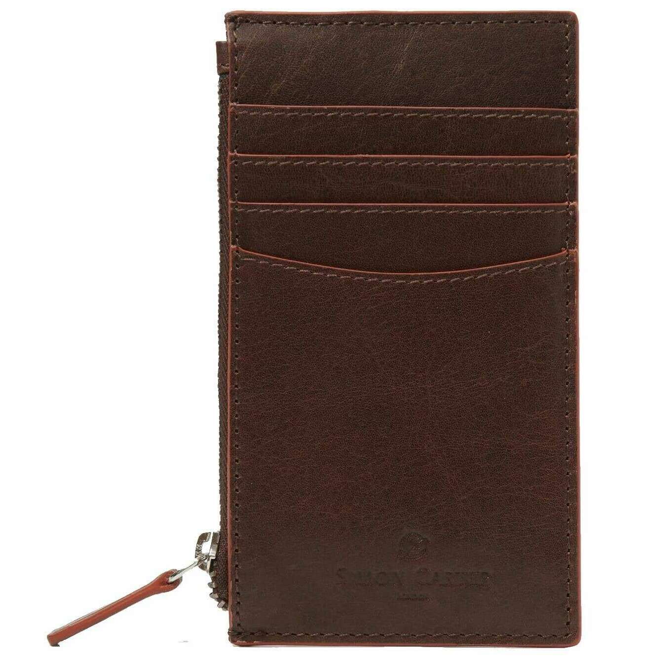 Simon Carter Creditcardportemonnee met Contrasterende Rand en Rits - Bruin/Rood