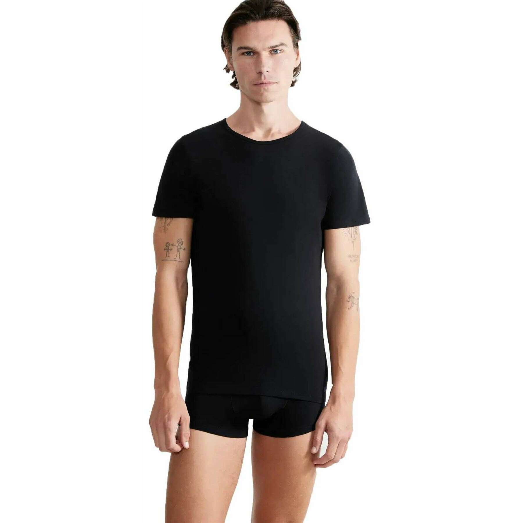 Dit zwarte Ever Eeasy O-hals-T-shirt voor heren, aangeboden door het merk Sloggi, is gemaakt van 95% katoen en 5% elastaan. Ook het zwarte t-shirt is ontworpen in een effen patroon. Om dit t-shirt in goede staat te houden, wordt aanbevolen om het in de machine te wassen op 40 graden. Alle t-shirts worden compleet geleverd met een sloggi-verpakking. Het Sloggi Ever Ease O-Neck T-shirt - Zwart, perfect voor veelzijdige styling en optimaal comfort. De ronde hals en het regular fit ontwerp zorgen voor een veelzijdige, moderne en eigentijdse look die op eindeloze manieren gestyled kan worden. Gemaakt met een verkoelende HeiQ smart temp-technologie mix van katoen en elastaan, biedt een zachte en ademende slijtage en geeft je bewegingsvrijheid tijdens je dagelijkse reizen.