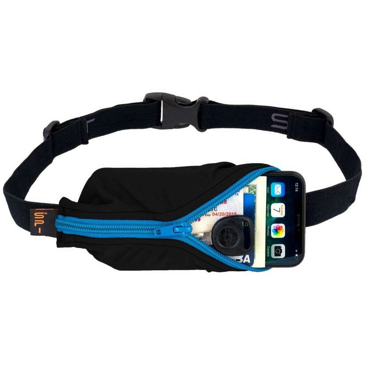 Deze unisex hardloopriem met grote zak van het merk SPIbelt is gemaakt van elastiek en is uitgevoerd in het zwart. Alle riemen worden compleet geleverd met spibelt-tag. De SPIbelt hardloopriem met grote zak - zwart/turquoise is perfect voor licht joggen of een volledige marathon! Deze fitnessriem wordt geleverd met een onopvallend vak waarin u al uw trainingsaccessoires, hoofdtelefoons, sleutels, identiteitskaarten en creditcards veilig en binnen handbereik kunt houden. Hij kan worden uitgebreid om te dragen wat je nodig hebt en is geschikt voor alle telefoonformaten. Stuitert vrij, kan onder kleding of erboven worden gedragen en het comfortabele, zachte elastiek voorkomt schuren.