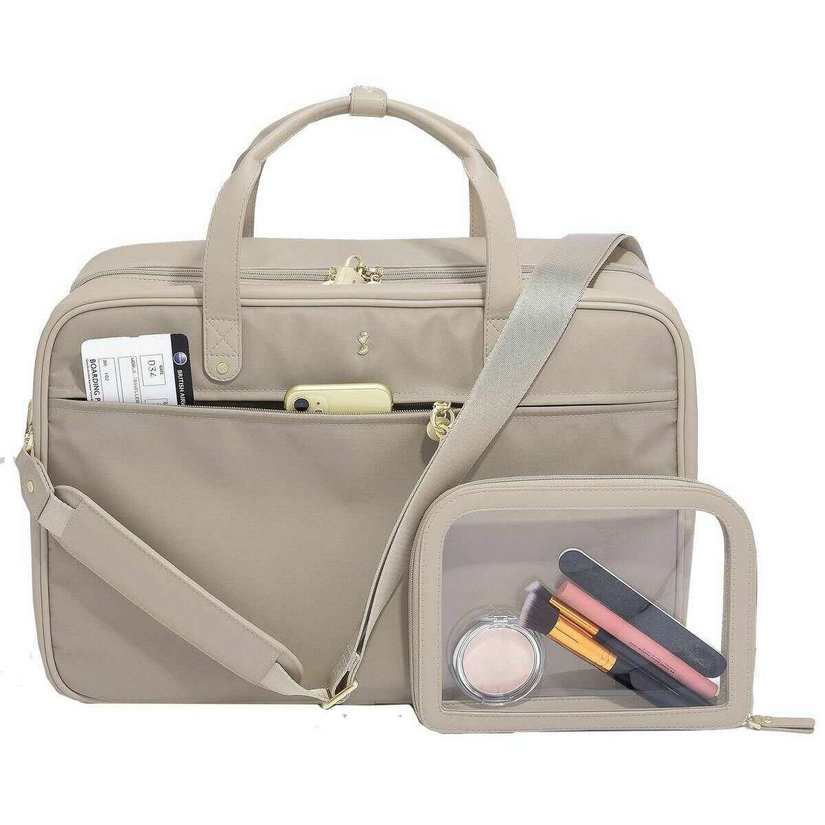 Deze handbagage van Stackers is gemaakt van beige kunstleer en fluweel en is perfect voor dames en een musthave. De afmetingen zijn 33,5 cm (hoogte) x 22,5 cm (breedte) x 46 cm (diepte). Alle tassen worden compleet geleverd met een stapelverpakking. De Stackers Cabin Bag - Clay Beige is perfect voor onderweg. Deze beige handbagage is voorzien van een laptopvak, twee grote compartimenten met ritssluiting en een reeks kleinere vakken. Compleet met schouderbanden, rugzakriemen en een ritssluiting voor extra veiligheid.