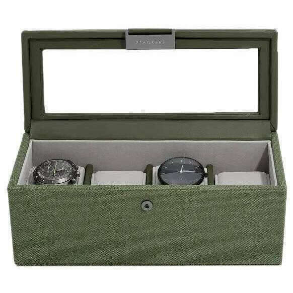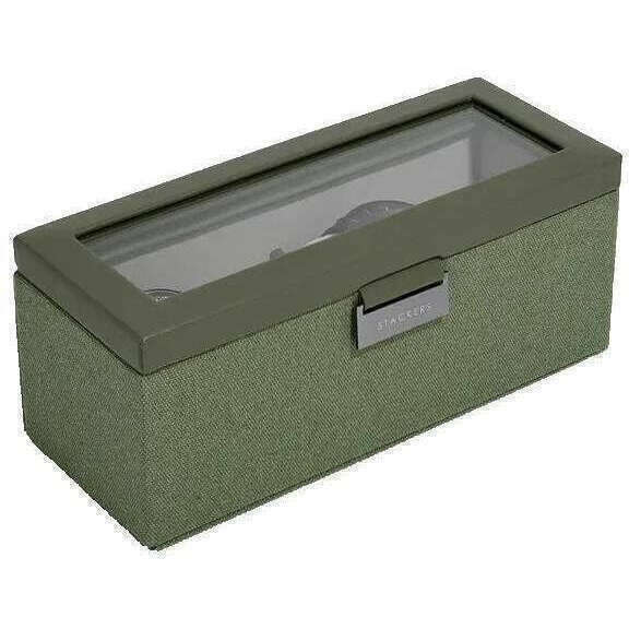 Dit herencanvas 4 -delige horlogebox van de merkstapelaars is gemaakt van faux leer en canvas en wordt in groen tentoongesteld. Het meet 24 cm (hoogte) x 9,5 cm (breedte) x 9,8 cm (diepte). Alle dozen van de heren zijn compleet in Stackers -verpakking. De Stackers Canvas 4 -delige horlogebox - Green is ideaal om al je horloges op één plek te houden en tentoongesteld in een smartbox die hen tegenhoudt stof in een lade te verzamelen wanneer ze niet worden gedragen. Elk van uw horloges kan worden vastgebonden rond een klein kussen voor een aantrekkelijke presentatie. Een must voor elke herencollectie.