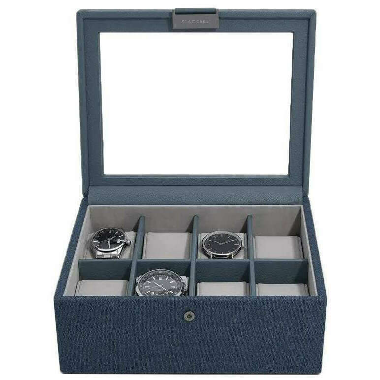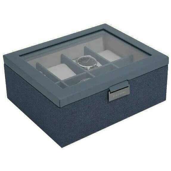 Deze blauwe heren 8 -delige horlogebox is aangeboden door de merkstapels en is gemaakt van faux leer en canvas. Het meet 26 cm (hoogte) x 19 cm (breedte) x 9,8 cm (diepte). Alle dozen van de heren zijn compleet in Stackers -verpakking. De Stackers canvas 8 -delige horlogebox - Blauw is ideaal om al je horloges op één plek te houden en tentoongesteld in een smartbox die hen tegenhoudt stof in een lade te verzamelen wanneer ze niet worden gedragen. Elk van uw horloges kan worden vastgebonden rond een klein kussen voor een aantrekkelijke presentatie. Een must voor elke herencollectie.
