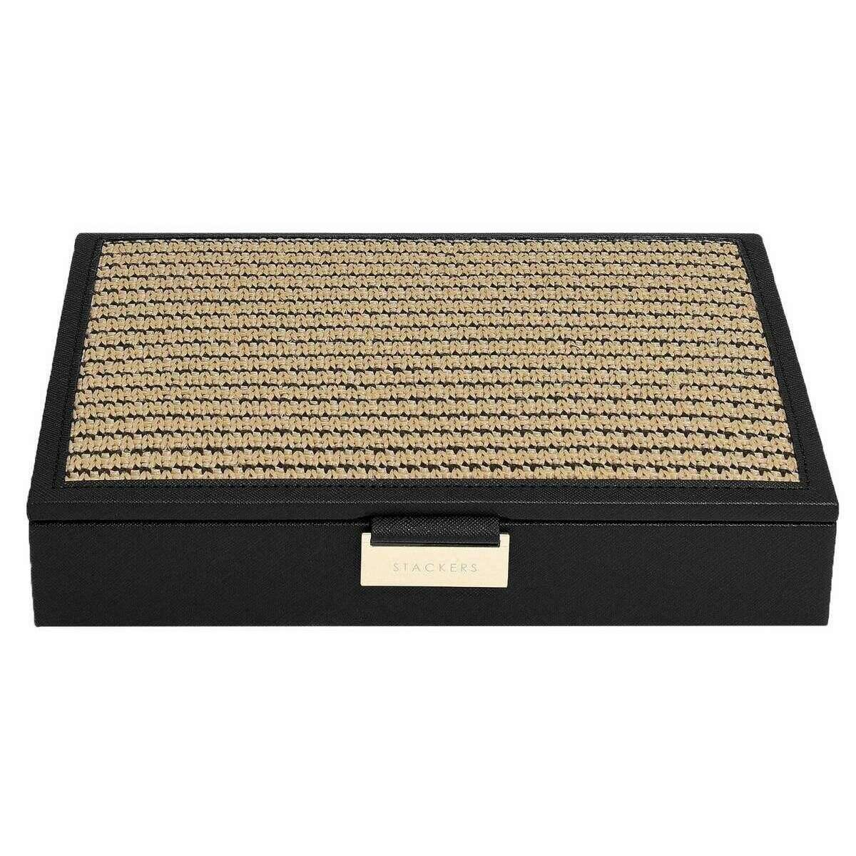Stackers Klassiek sieradendoosdeksel - Zwart Raffia