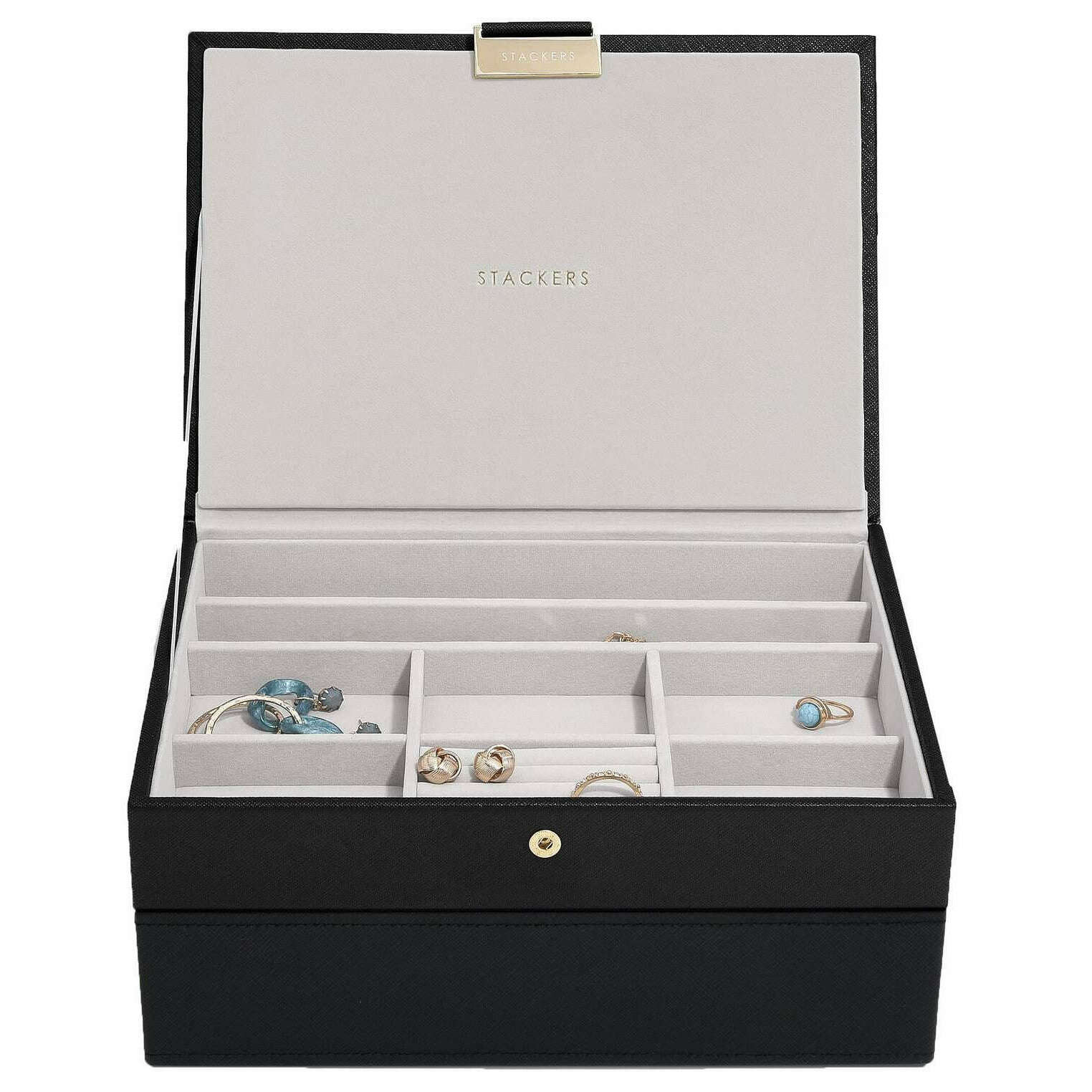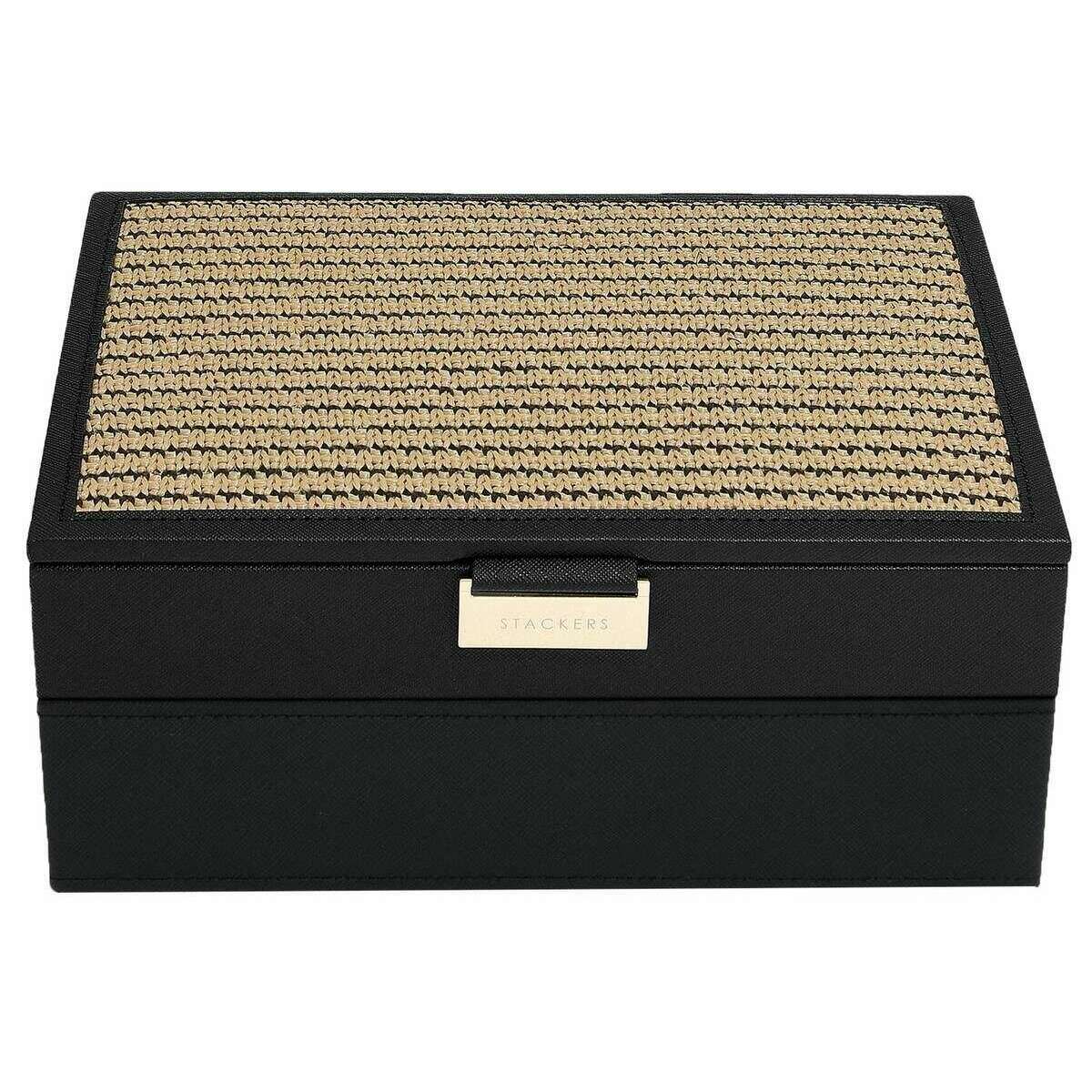 Stackers Klassieke set van 2 sieradendoosjes - Zwart Raffia