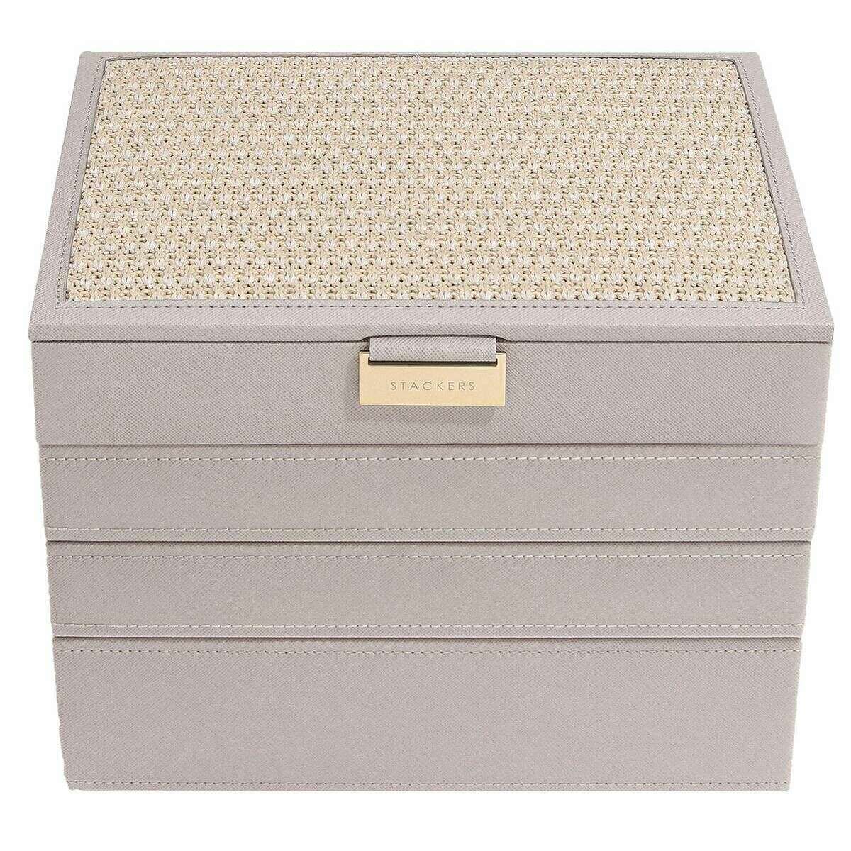Stackers Klassieke set van 4 sieradendoosje - Taupe Raffia