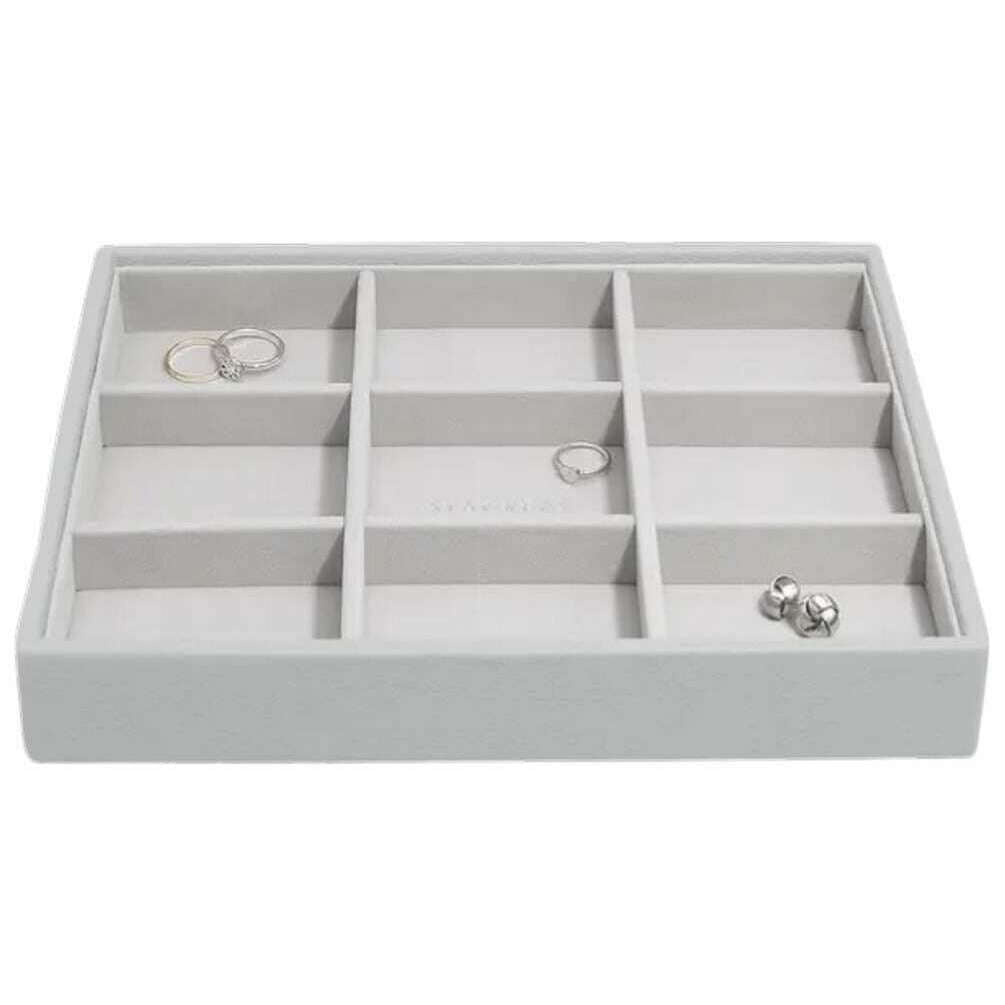 Deze klassieke statement laag voor dames is gemaakt van kunstleer en fluweel, uitgevoerd in een grijze kleur en is van het merk Stackers. De afmetingen zijn 3,7 cm (hoogte) x 25 cm (breedte) x 18 cm (diepte). Het wordt aanbevolen om deze sieradendoos schoon te vegen om deze in goede staat te houden. Alle sieradendoosjes worden compleet geleverd met stapelverpakking. De Stackers Classic Statement Layer - Pebble Grey is slim gemaakt en ontworpen om al je oorbellen, ringen of haarclips perfect vast te houden. Het kan aan elk ander klassiek sieradenbakje worden toegevoegd om een ​​sieradendoosje te creëren, maar kan ook op zichzelf worden gebruikt. U hoeft geen concessies te doen aan de organisatie.