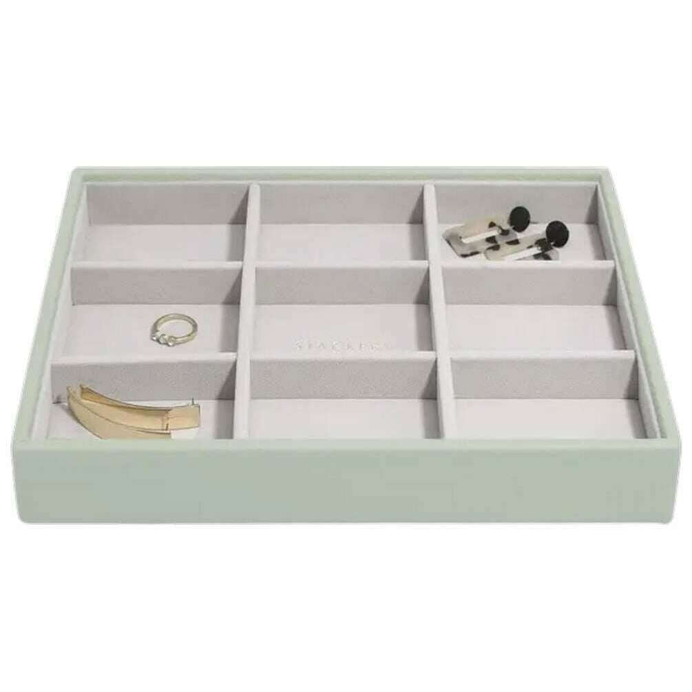 Maak kennis met dit klassieke statement-laagje voor dames van Stackers, gemaakt van kunstleer en fluweel in een saliegroene kleur. De afmetingen zijn 3,7 cm (hoogte) x 25 cm (breedte) x 18 cm (diepte). Het wordt aanbevolen om deze sieradendoos schoon te vegen om deze in goede staat te houden. Alle sieradendoosjes worden compleet geleverd met stapelverpakking. De Stackers Classic Statement Layer - Sage Green is slim gemaakt en ontworpen om al je oorbellen, ringen of haarclips perfect vast te houden. Het kan aan elk ander klassiek sieradenbakje worden toegevoegd om een ​​sieradendoosje te creëren, maar kan ook op zichzelf worden gebruikt. U hoeft geen concessies te doen aan de organisatie.