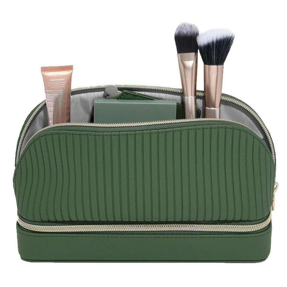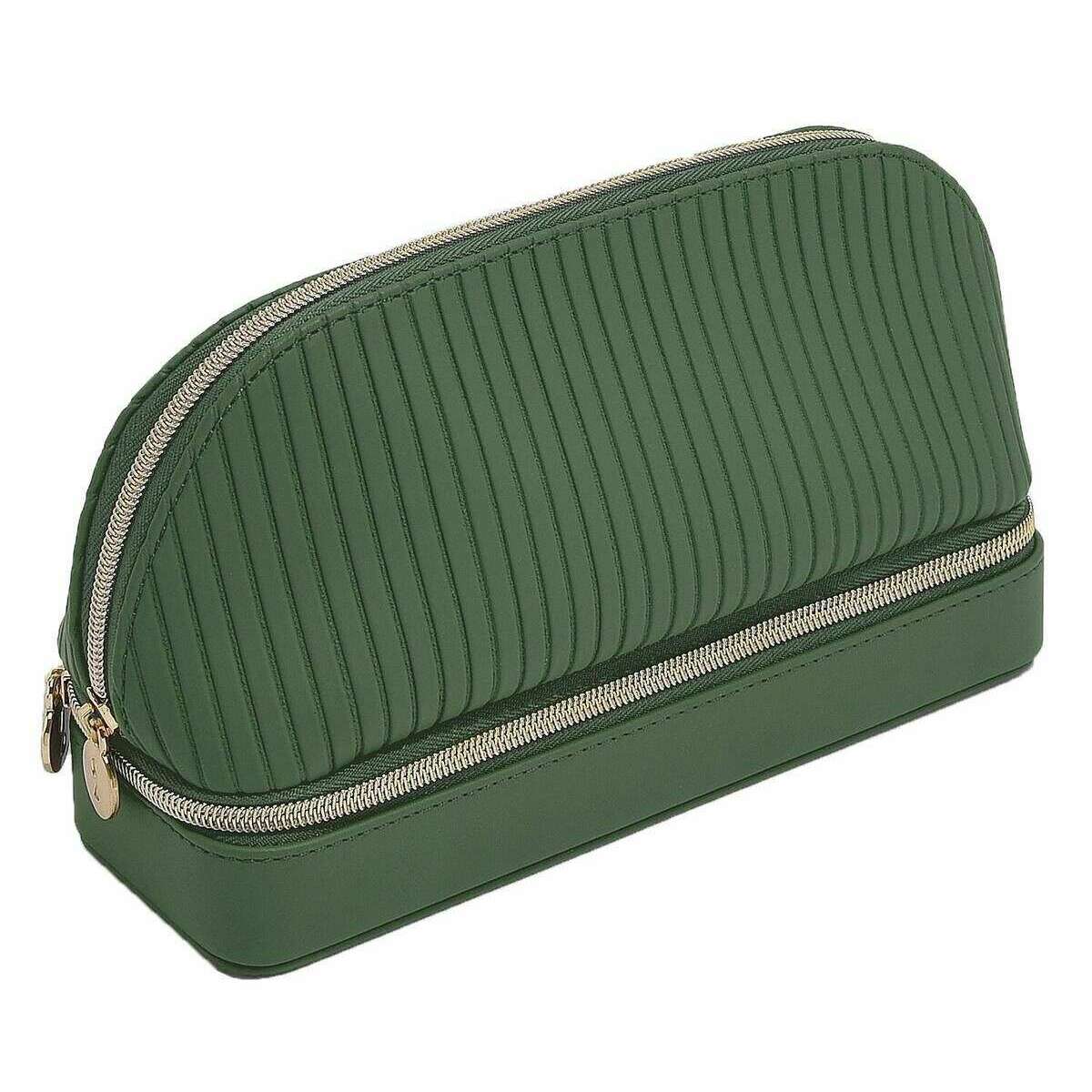 Maak kennis met deze make-up- en sieradentas voor dames van Stackers, gemaakt van kunstleer en fluweel in een smaragdgroene kleur. De afmetingen zijn 15 cm (hoogte) x 24 cm (breedte) x 8,5 cm (diepte). Alle tassen worden compleet geleverd met een stapelverpakking. De Stackers Cosmetica- en Sieradentas - Smaragdgroen is een musthave voor onderweg! Deze stijlvolle groene make-up- en sieradentas heeft twee hoofdcompartimenten: één voor je make-up en huidverzorging en een ander compartiment compleet met ringrollen en een afneembaar halskettinggedeelte voor je sieraden.