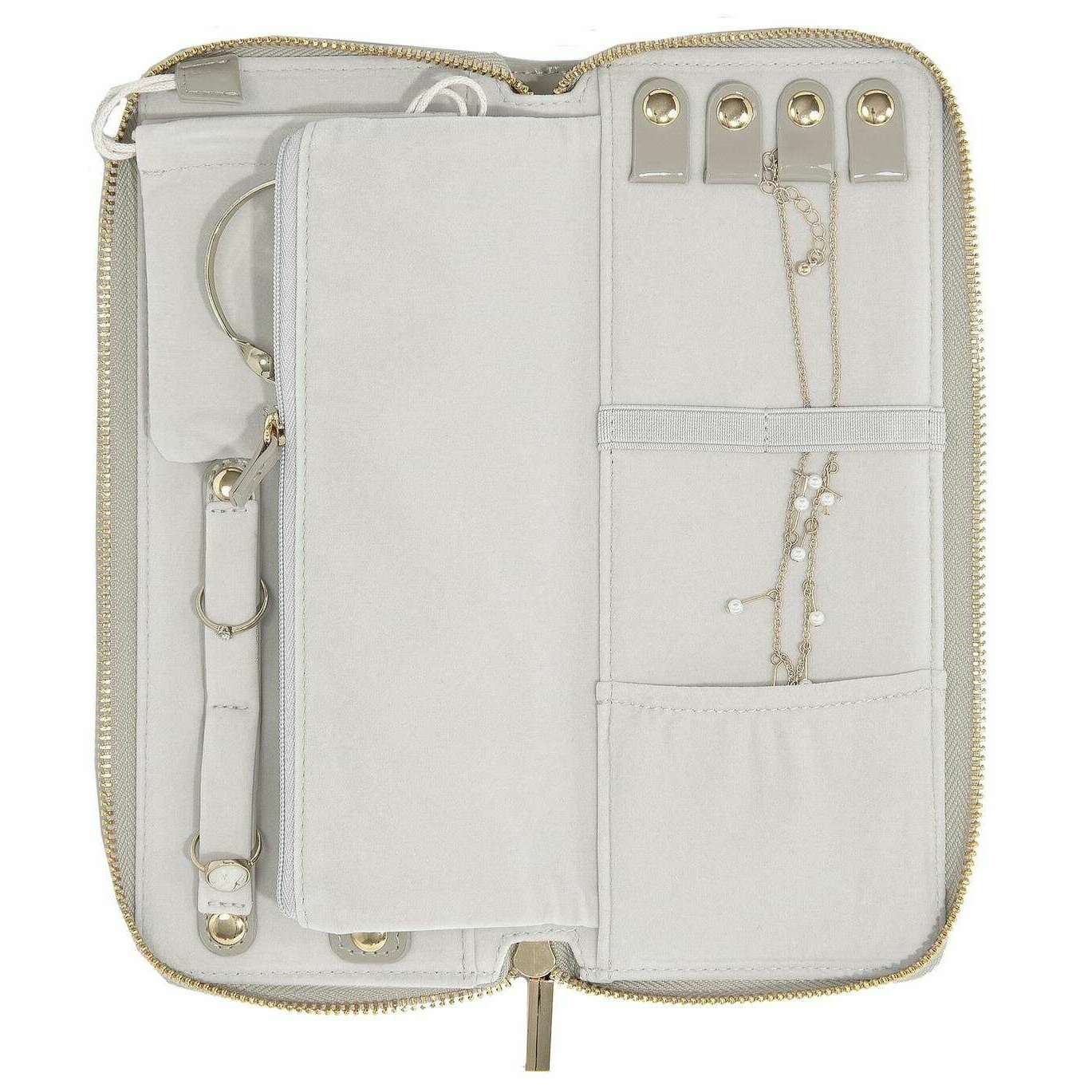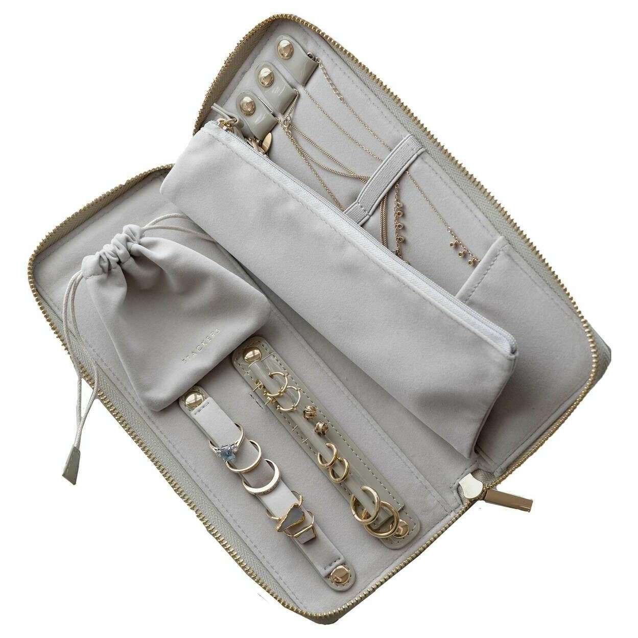 Maak kennis met deze damessieradenrol van Stackers, gemaakt van kunstleer in een lakgrijze kleur. De afmetingen zijn 3 cm (hoogte) x 24,5 cm (breedte) x 10,3 cm (diepte). Alle sieradendoosjes worden compleet geleverd met stapelverpakking. De Stackers Sieradenrol - Patent Putty Grey is een musthave voor onderweg! Deze grijze sieradenrol is perfect voor op reis met sieraden en is voorzien van een ritssluiting voor extra veiligheid.