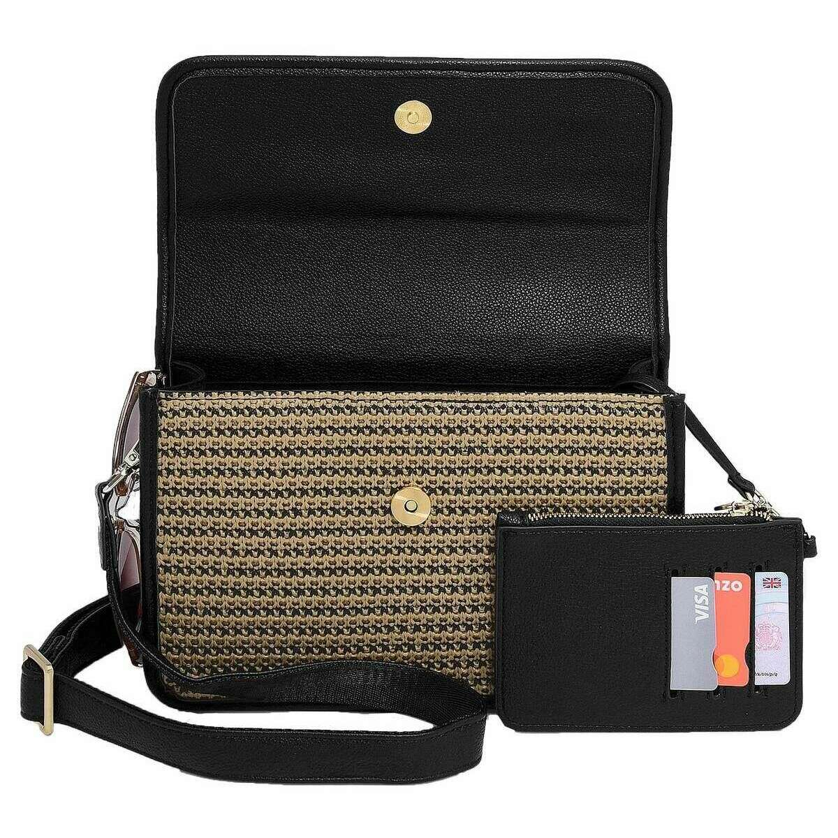 Maak kennis met deze raffia crossbodytas voor dames van Stackers, gemaakt van raffia-effect en kunstleer in een zwarte raffia-kleur. De afmetingen zijn 17 cm (hoogte) x 7,5 cm (breedte) x 25 cm (diepte). Alle tassen worden compleet geleverd met een stapelverpakking. De Stackers Raffia Crossbody Bag - Black Raffia is een musthave voor onderweg! Deze unieke en trendy crossbodytas van zwart raffia heeft meerdere vakken, een make-upspiegel met stapelfunctie en een verwijderbaar portemonneetje voor kaarten. Perfect voor dagelijks gebruik dankzij de afneembare en verstelbare crossbodyband.
