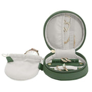 Ontwerper Stackers heeft dit sieradendoosje van kunstleer en fluweel voor dames in smaragdgroene tinten gepresenteerd. De afmetingen zijn 5,5 cm (hoogte) x 11,5 cm (breedte) x 11,8 cm (diepte). Alle sieradendoosjes worden compleet geleverd met stapelverpakking. De Stackers Round Travel Sieradendoos - Smaragdgroen is perfect voor onderweg. Deze groene reissieradendoos heeft afneembare ring- en oorbelhouders en een extra zakje voor grotere sieraden. Compleet met ritssluiting voor extra veiligheid.