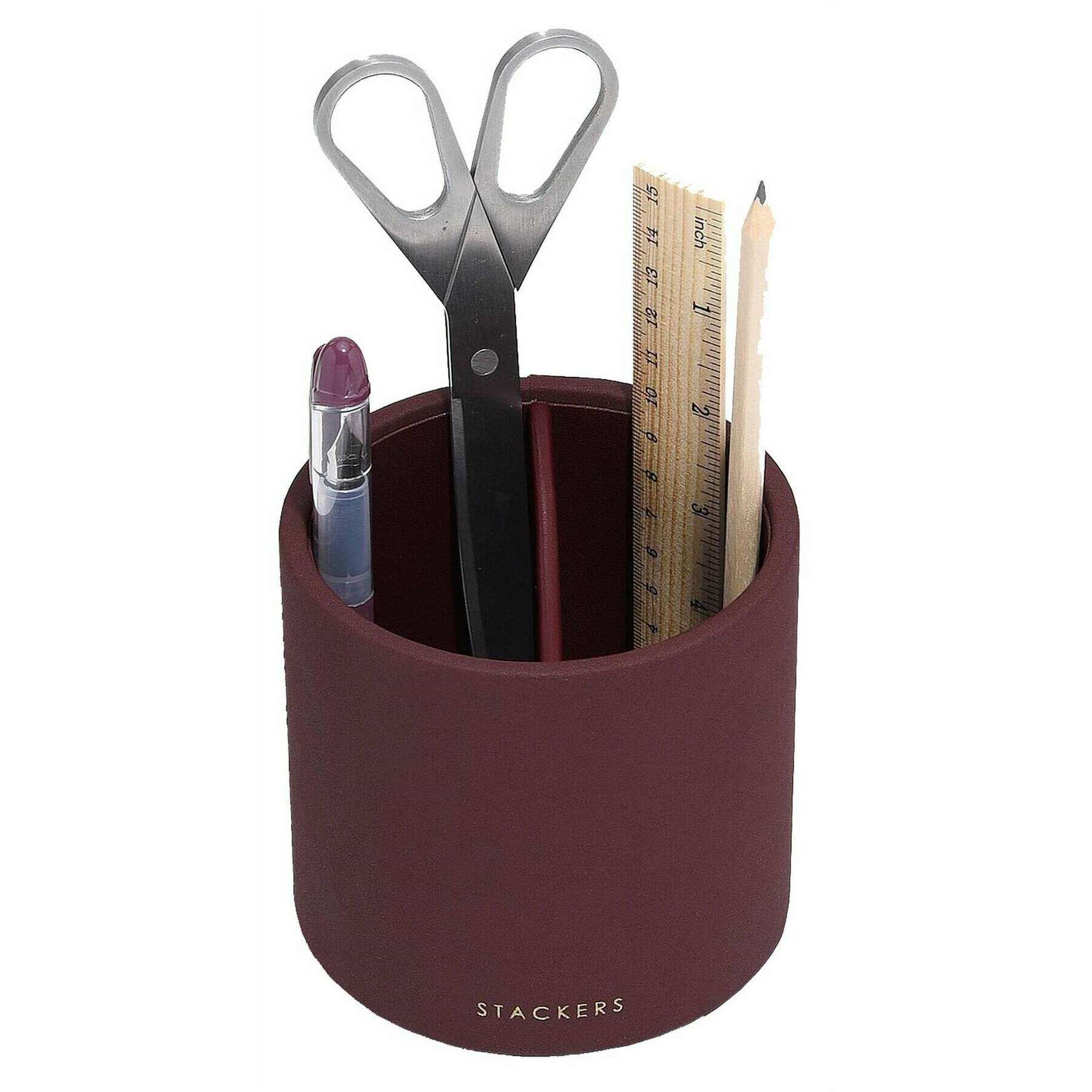 Ontwerper Stackers heeft dit bureauaccessoire van kunstleer voor dames uitgebracht in bordeauxrode granaattinten. De afmetingen zijn 14,3 cm (hoogte) x 10,7 cm (breedte) x 10,7 cm (diepte). Alle bureauaccessoires worden compleet geleverd in een stapelverpakking. De Stackers Stationery Pot - Garnet Burgundy is een musthave voor elk bureau! Deze bordeauxrode staande pot is perfect voor het opbergen van vaste spullen en heeft zelfs een verborgen bakje voor kleinere spullen eronder.