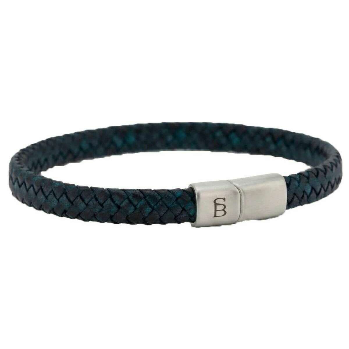 Steel & Barnett Riley Slanke gevlochten leren armband - Marine Navy