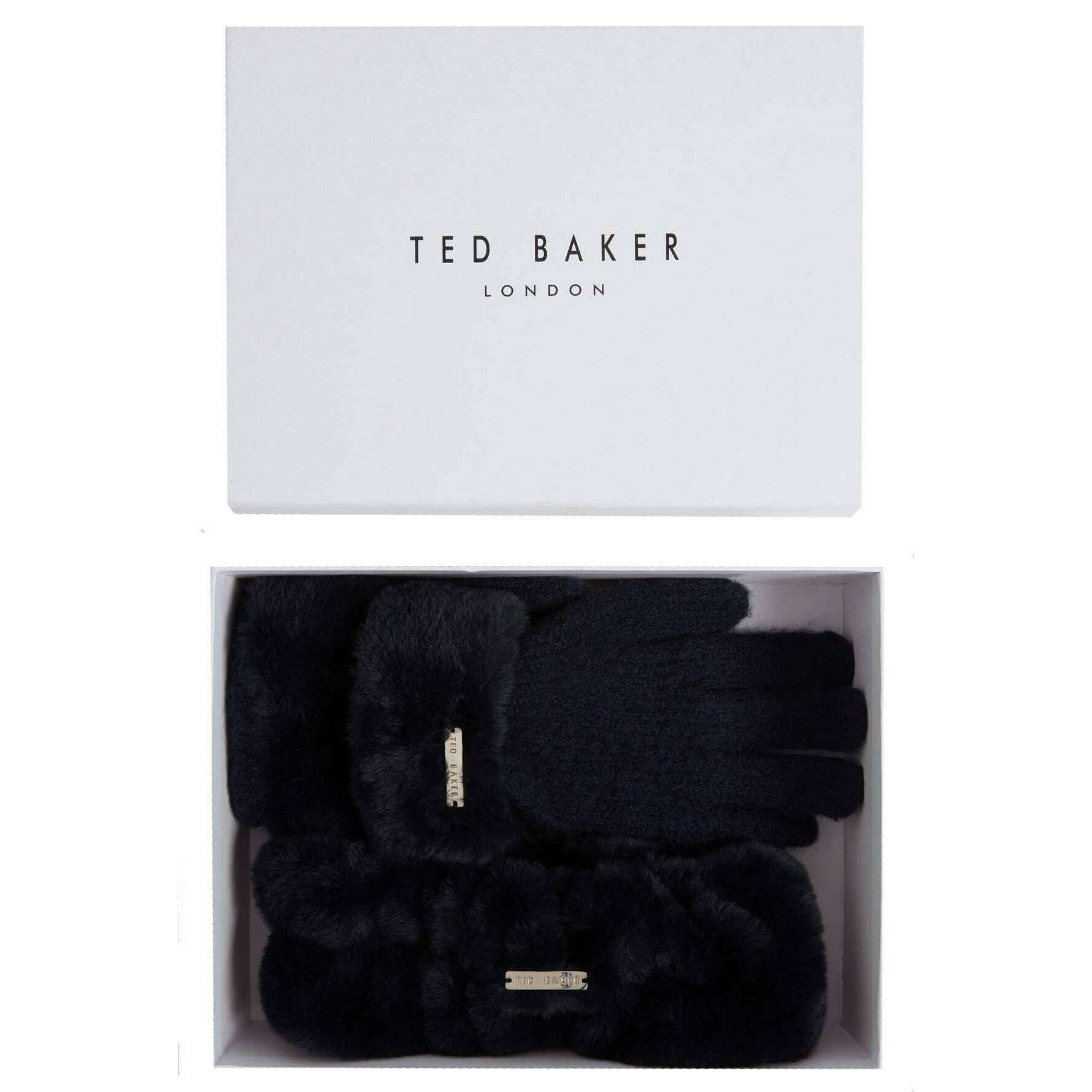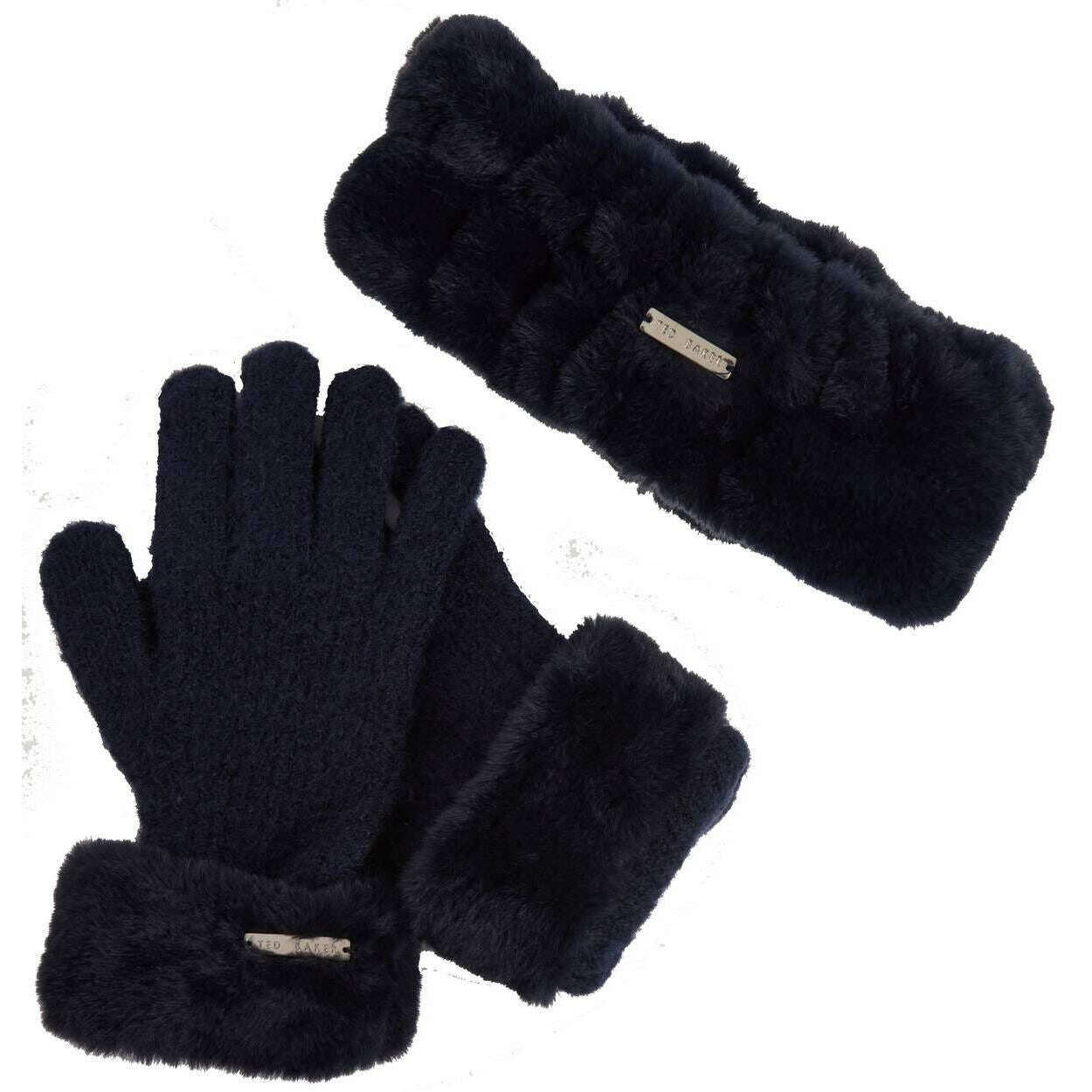 Ted Baker Furinni Faux Fur -hoofdband en handschoenen ingesteld - Navy