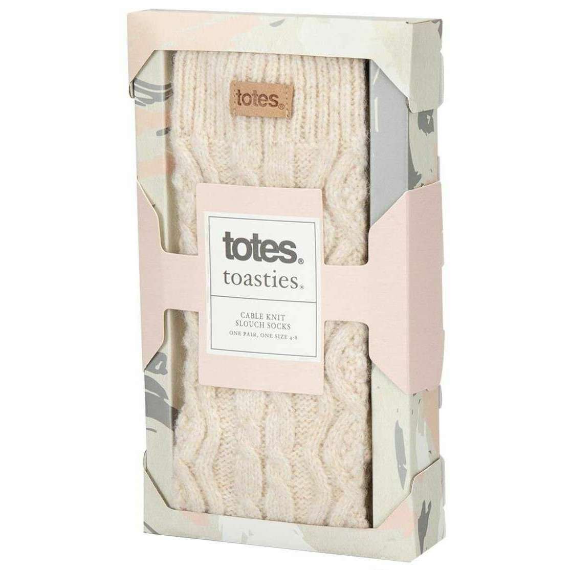 Totes Toasties Kabelgebreide slouch pantoffelsokken - Havercrème