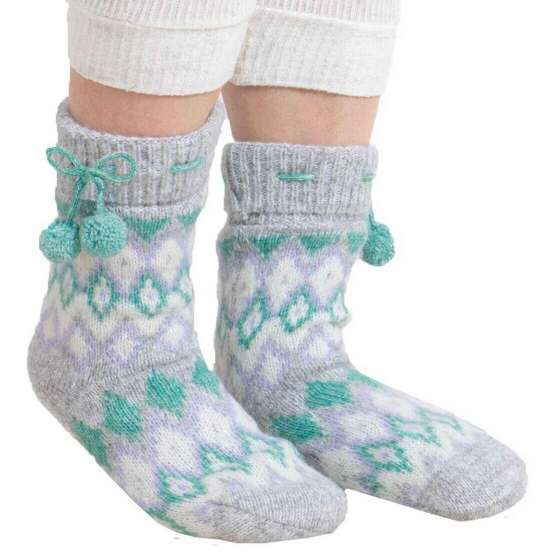 Totes Toasties Fair Isle Chenille pantoffelsokken - grijs/groen/paars